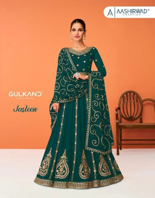 Aashirwad Creation Jasleen Georgette With Elegant Fancy Work Stylish Designer Long Gown