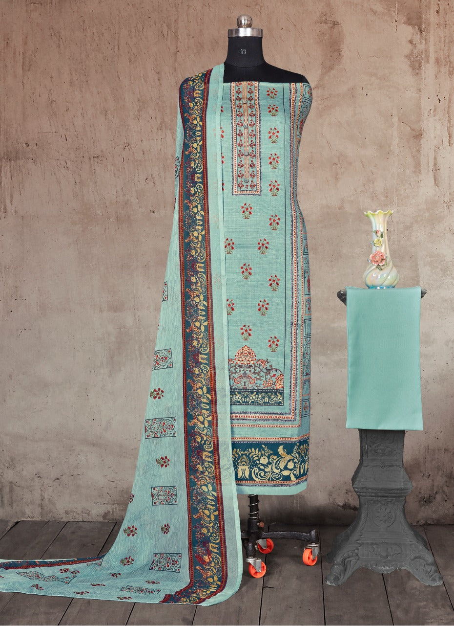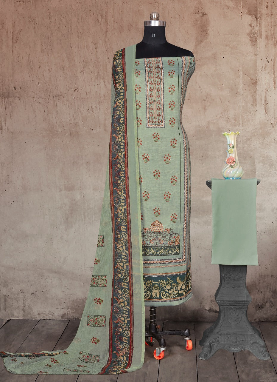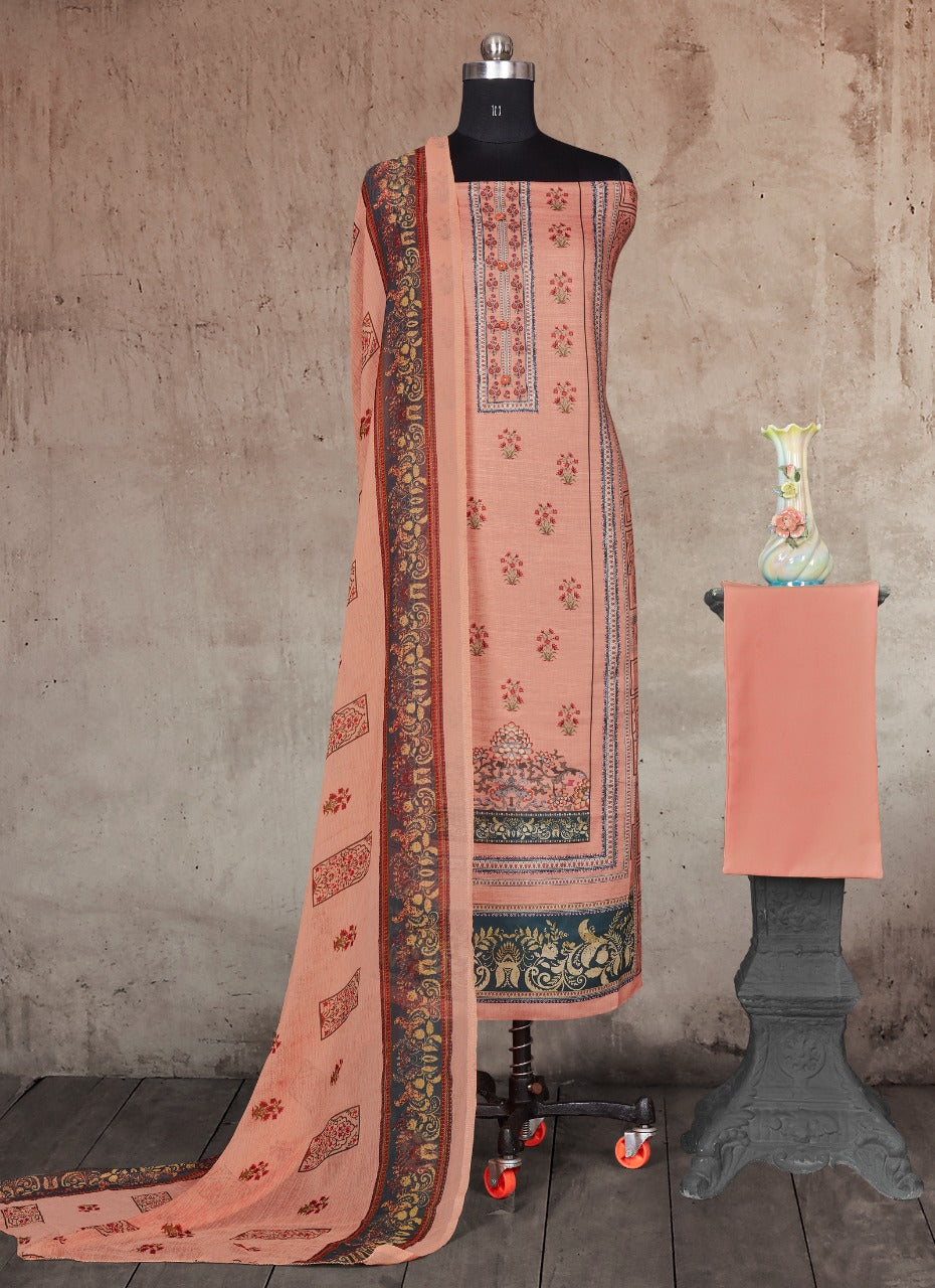 TOP :- jaam satin jacquard With jari Zardosi neck EMBROIDERY 2.5MTR BOTTOM :- _Cotton Solid Dyed .2.7mtr DUPATTA :- Masleen Digital Print WithTassel.2.25mtr |