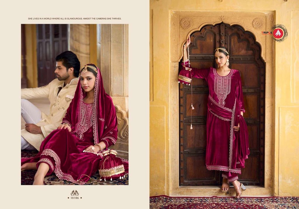 top:- viscos pink bravo velvet with heavy work and khatli work |
