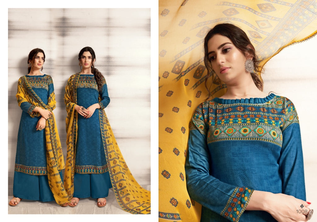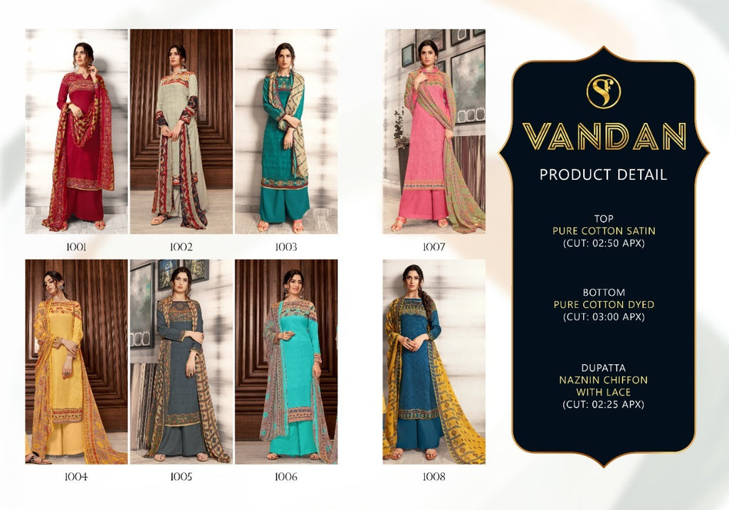 Fabric details Top :2.50 mtr (Pure COTTON SATIN) Bottom: 3.00 mtr (pure COTTON dyed) Designs: 08 |