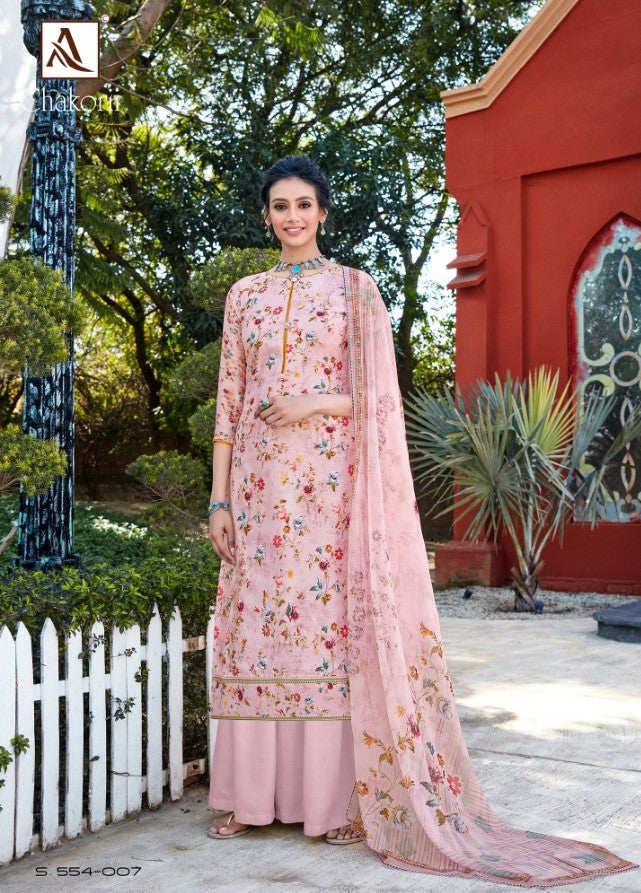 Top: Pure Zam Cotton Self Embroidery Digital Print with Swarovski Diamond |