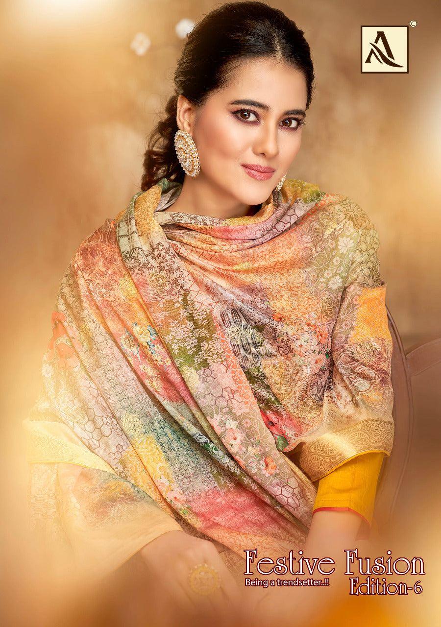 Alok Suit Festive Fusion Vol 6 Pure Cotton With Hand Work Stylish Designer Salwar Kameez