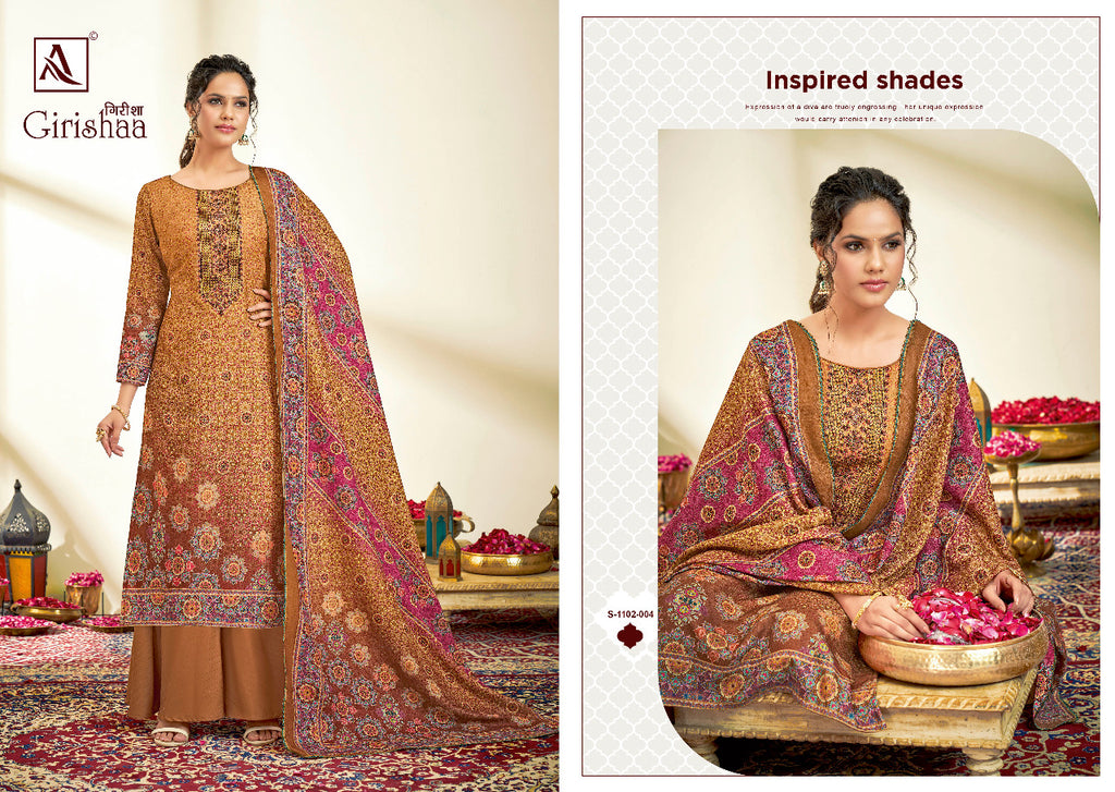 Alok Suit Girishaa Pashmina Digital Print With Embroidery Work Stylish Designer Festive Wear Salwar Kameez