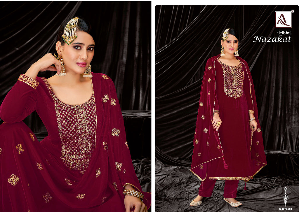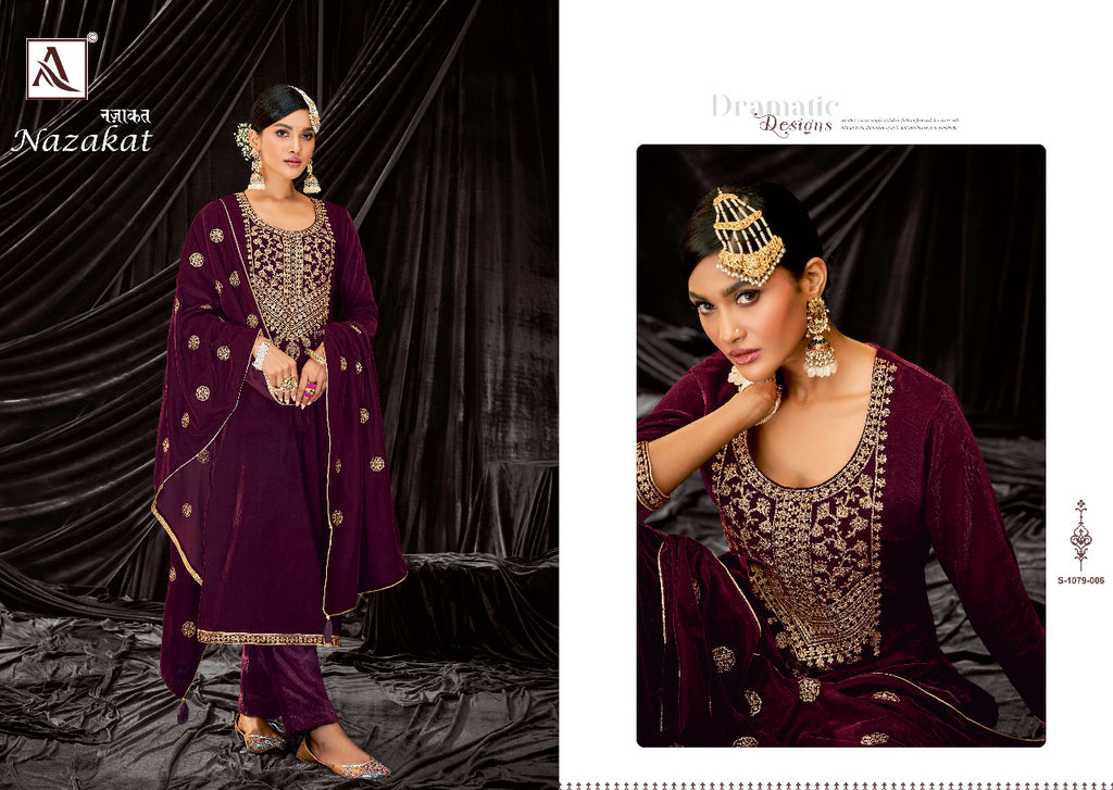 Alok Suit Nazakat Velvet With Heavy Embroidery Work Stylish Designer Party Wear Fancy Salwar Kameez