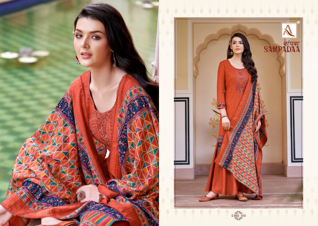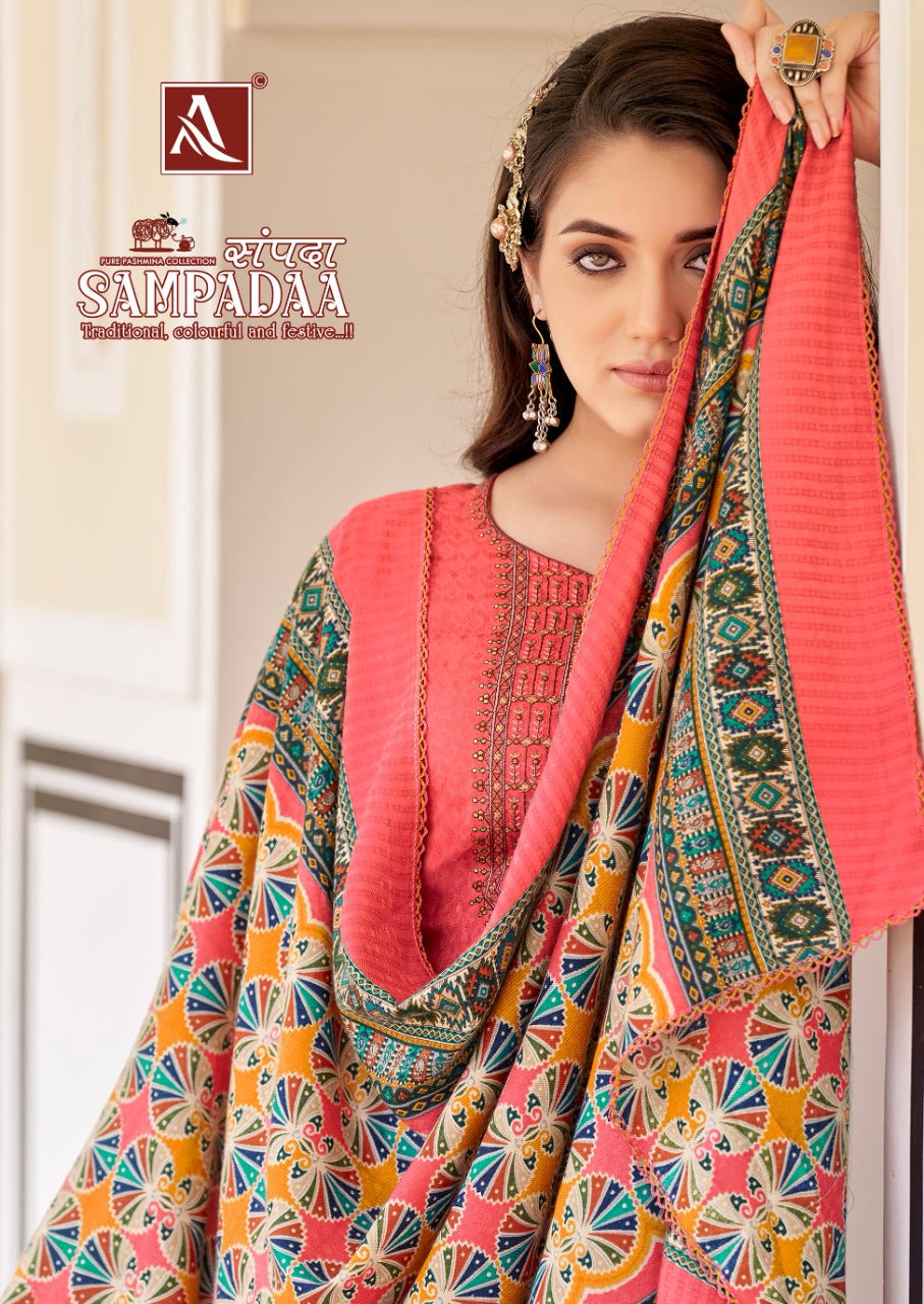 Alok Suit Sampadaa Pure Wool Digital Print Pashmina Embroidery Work Salwar Kameez