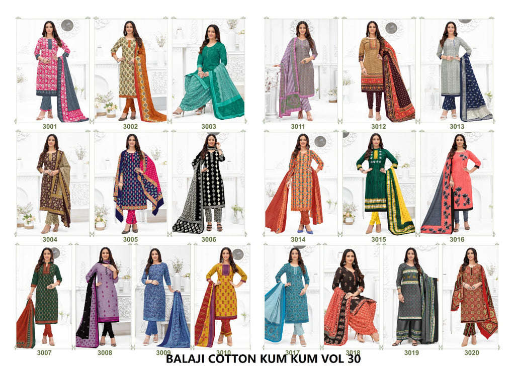 Balaji Kum Kum Vol 30 Pure Cotton With Beautiful Work Stylish Designer Casual Look Salwar Suit