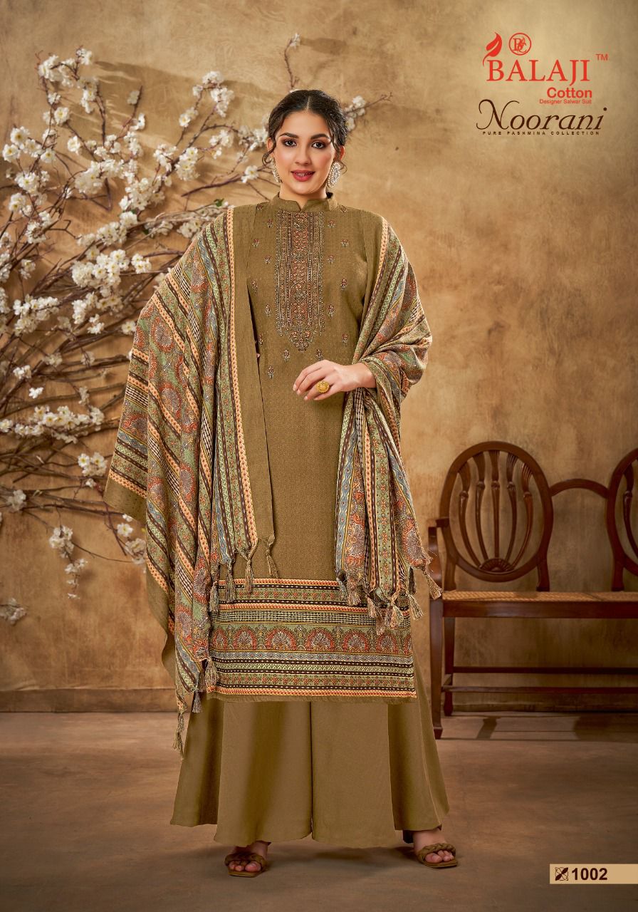 Balaji Noorani Pashmina Printed With Heavy Embroidery Work stylish Designer Casual Look Salwar Kameez