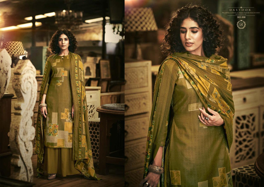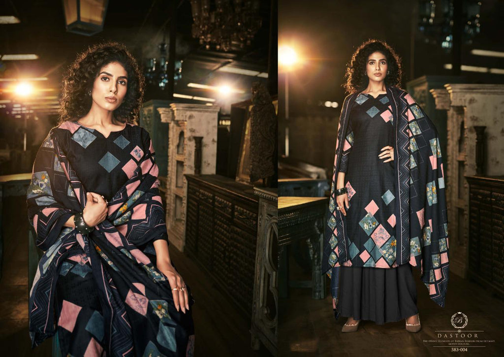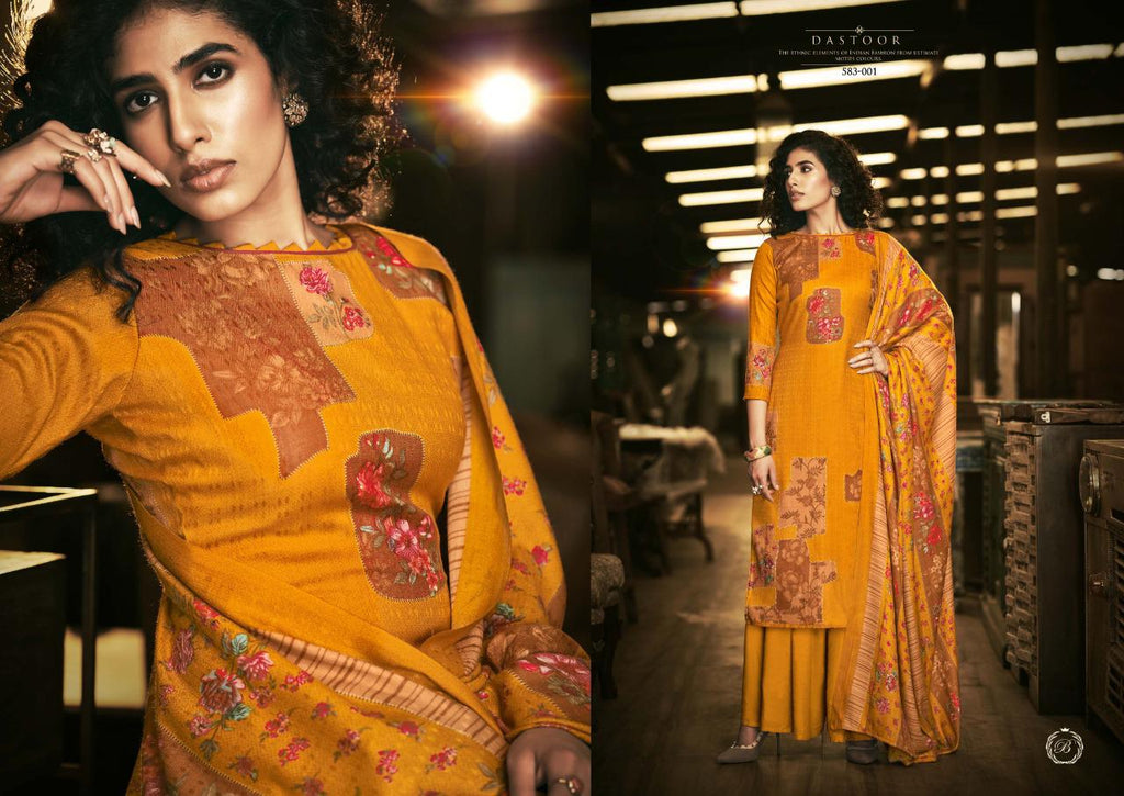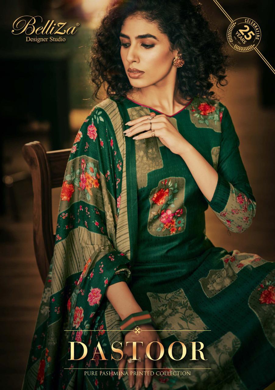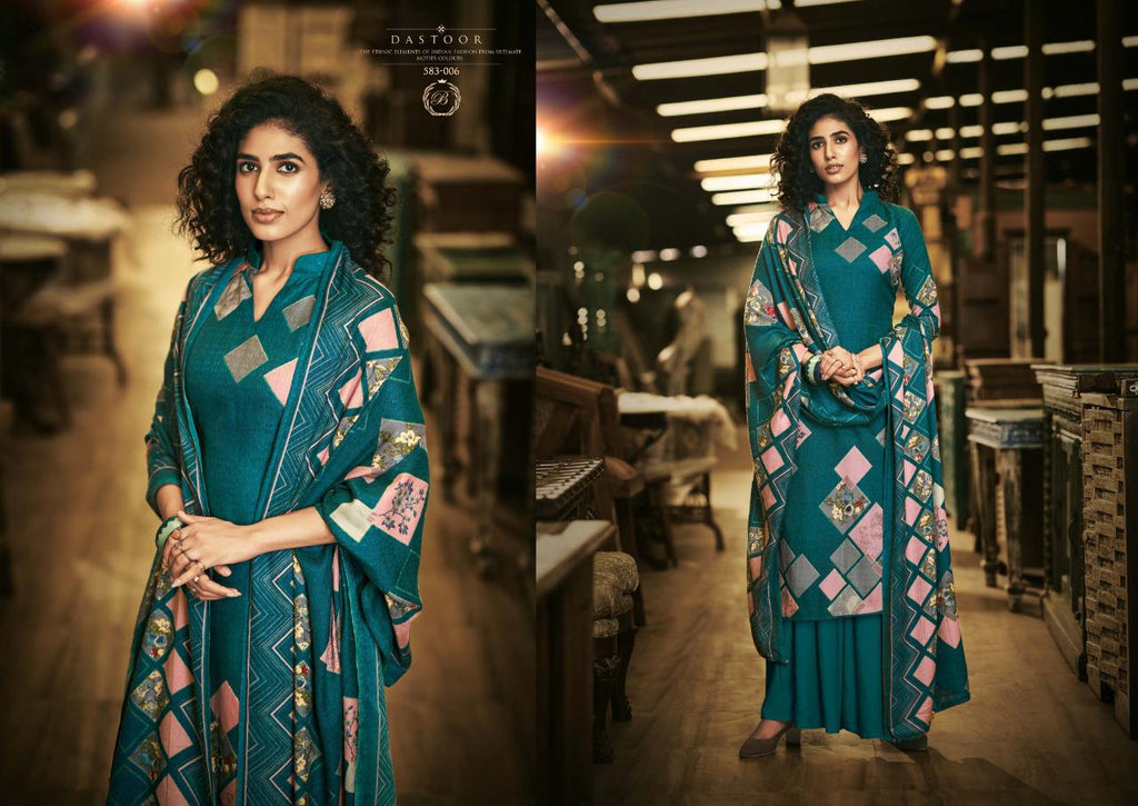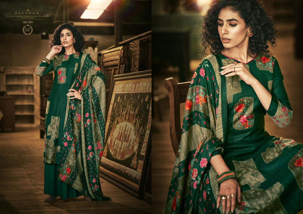 Top: 100% Pure Pashmina with Exclusive Digital style Prints. (2.50 mtrs) Dupatta: 100% Pure Pashmina Exclusive Print Shawl with 4 side lace. (2.30 mtr) Bottom: Pure Pashmina Spun. (3 mtrs) |