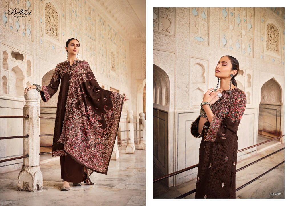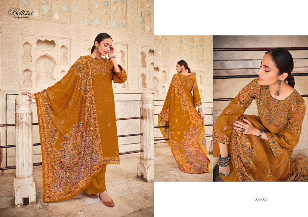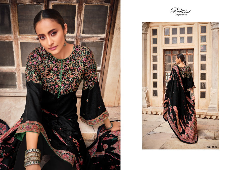 Top: 100% Pure Pashmina with Exclusive Designer Kaani Prints. (2.50 mtrs) Dupatta: 100% Pure Pashmina Shawl Exclusive Kaani Box Pallu Print with 4 side lace. (2.30 mtr) Bottom: Pure Pashmina Spun. (3 mtrs) |