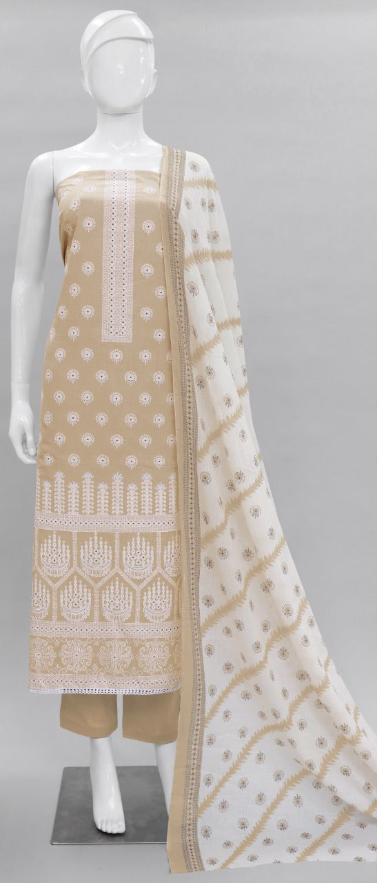 Fabric Details : Top :- _ Pure Cotton Print With Work ._2.5 Mtr Bottom :- Pure Cotton Dyed . 2.7 Mtr Dupatta :- _ Pure Cotton Print .2.25 Mtr |
