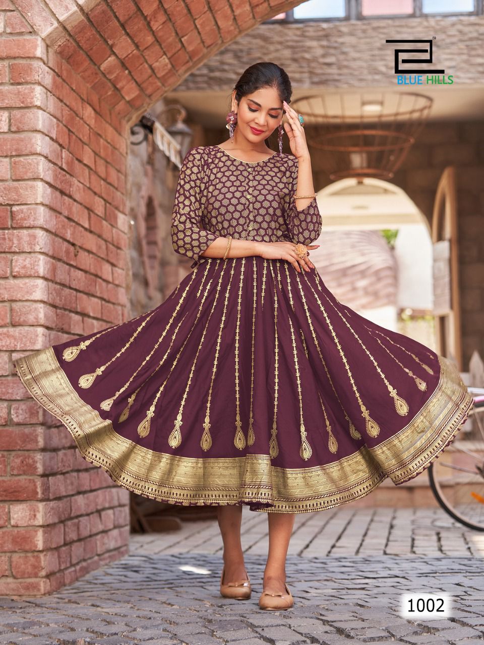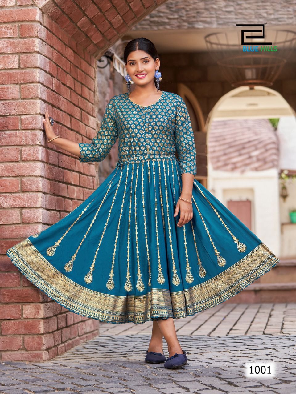 Blue Hills Melody Rayon With Fancy Printed Work Stylish Designer Attractive Look Long Gown