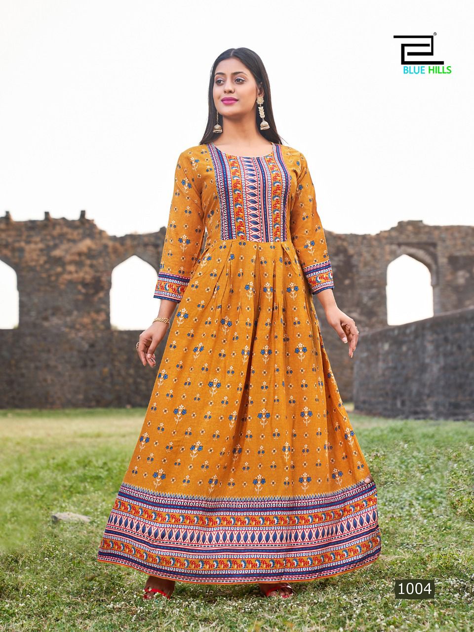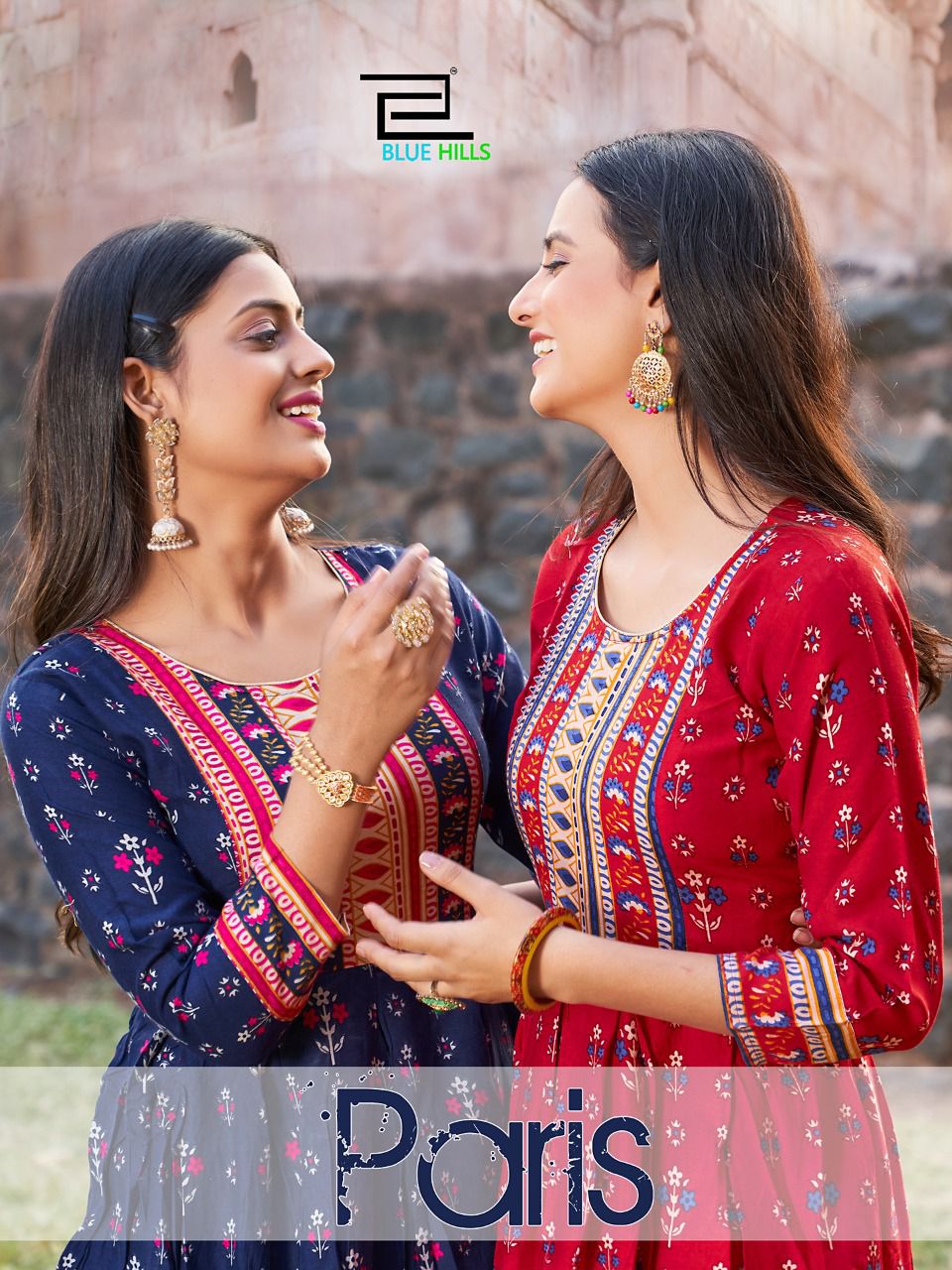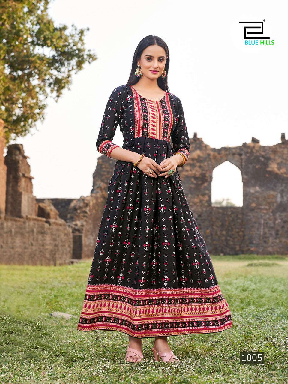 Blue Hills Paris Rayon With Heavy Beautiful Printed Work Stylish Designer Long Gown