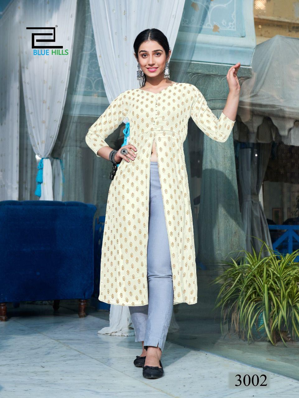 Blue Hills Zia Vol 3 Rayon With Foil Printed Work Stylish Designer Fancy Long Kurti