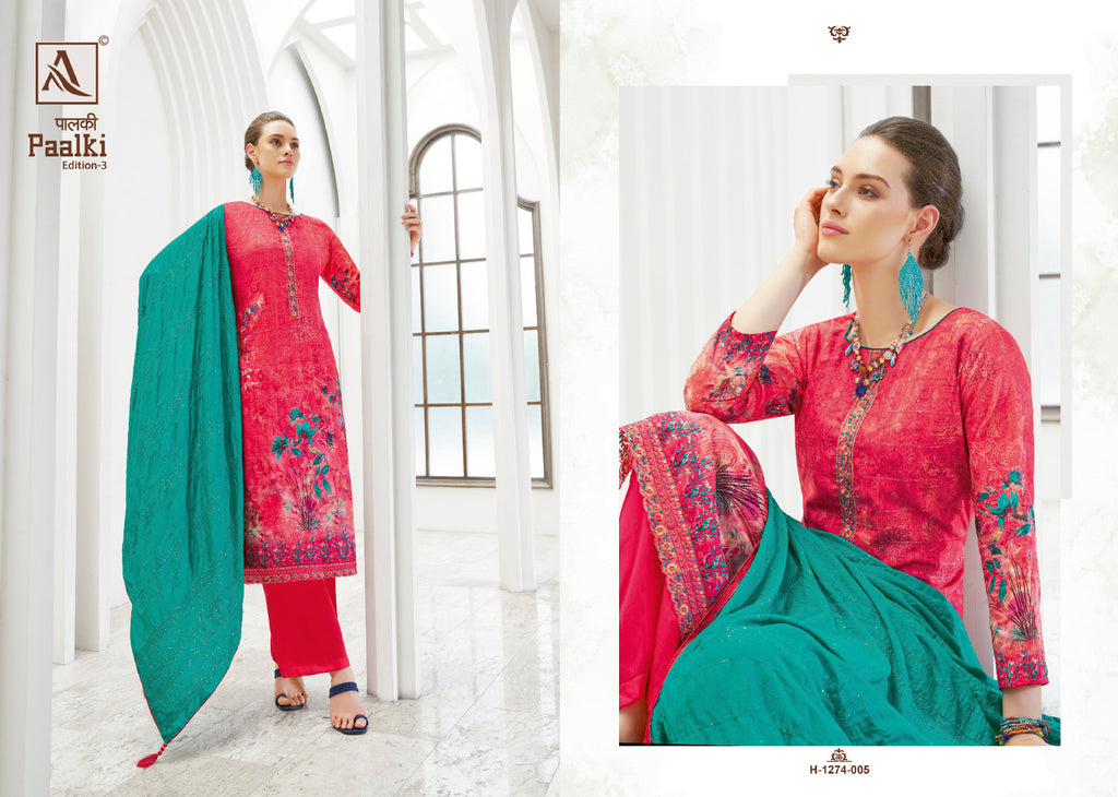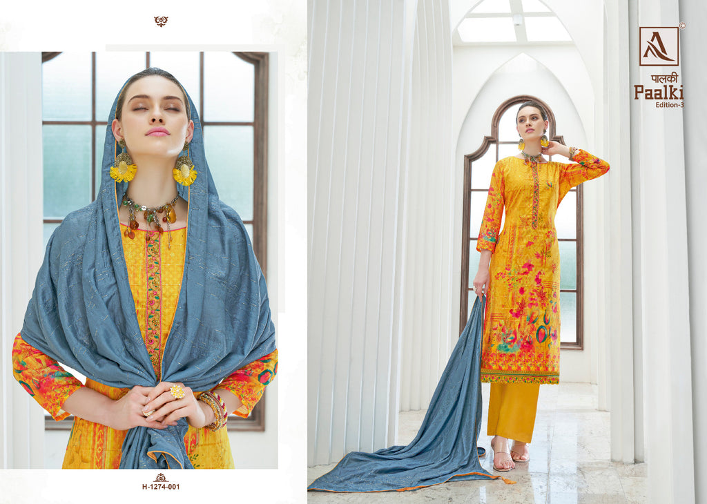 Top: Fancy Self Weaving Jacquard Digital Print With Embroidery And Swarovski Diamond Work Bottom: Pure Reyon Dyed Dupatta: Pure Hand Weave Jacquard Self Sequence Embroidery Dupatta |