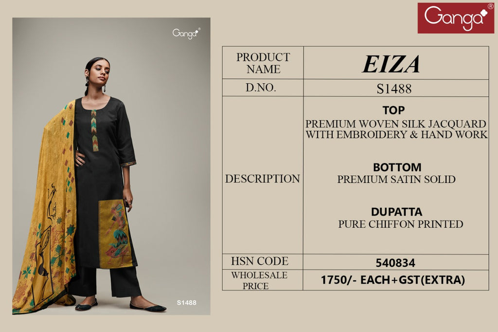 Ganga Eiza 1488 Silk Jacquard With Heavy Beautiful Work Stylish Designer Casual Look Salwar Kameez