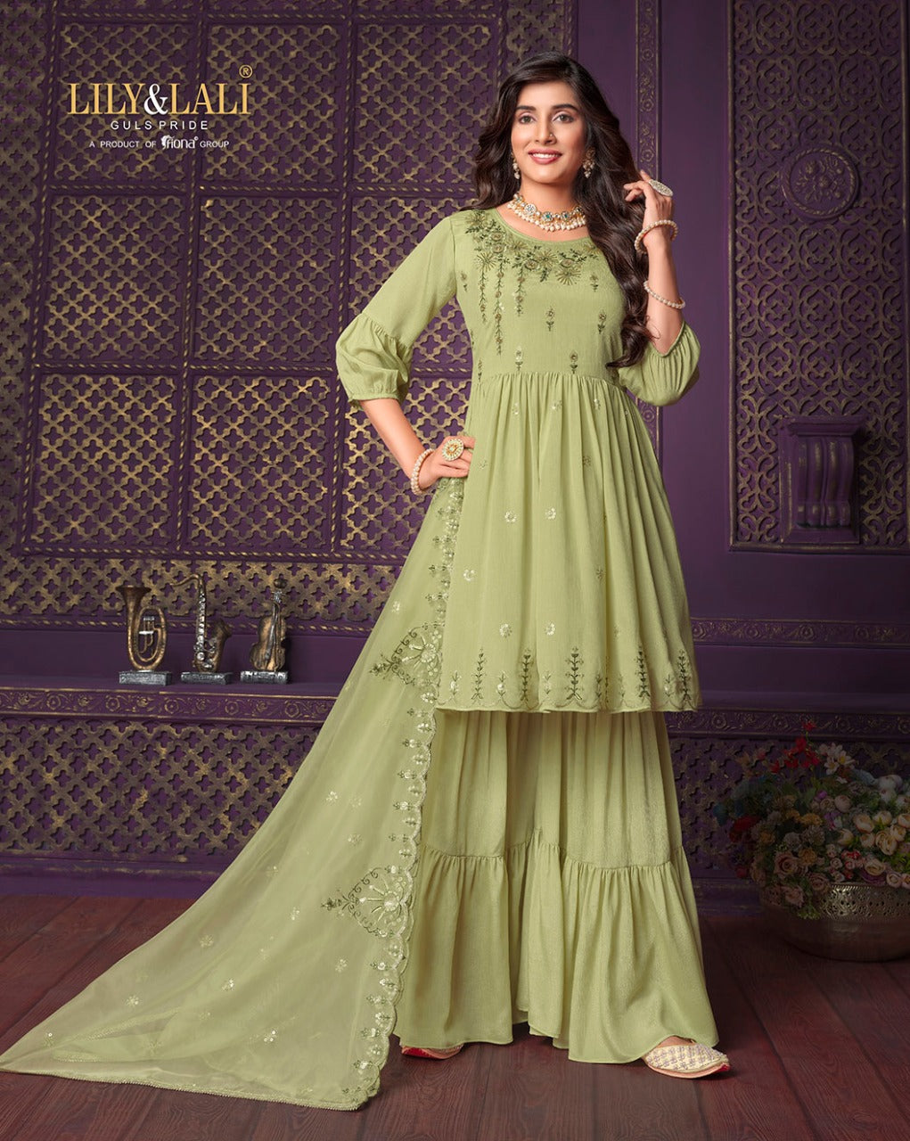 Top – Double Sequence & Handwork on Pure Chinnon Chiffon Bottom – Pure Chinnon Chiffon Gharara Dupatta – Pure Organza Dupatta with Double Sequence work |