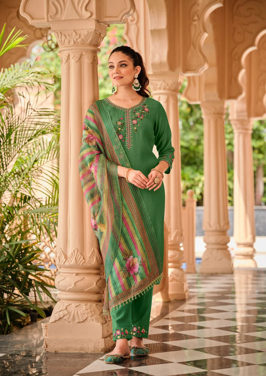 Top – Embroidery And Handwork On Pure Viscouse Fabrics Bottom – Pure Viscouse Fabrics Pant With Embroidery Dupatta – Organza Crochet Work Digital Dupatta With Fancy Lace |