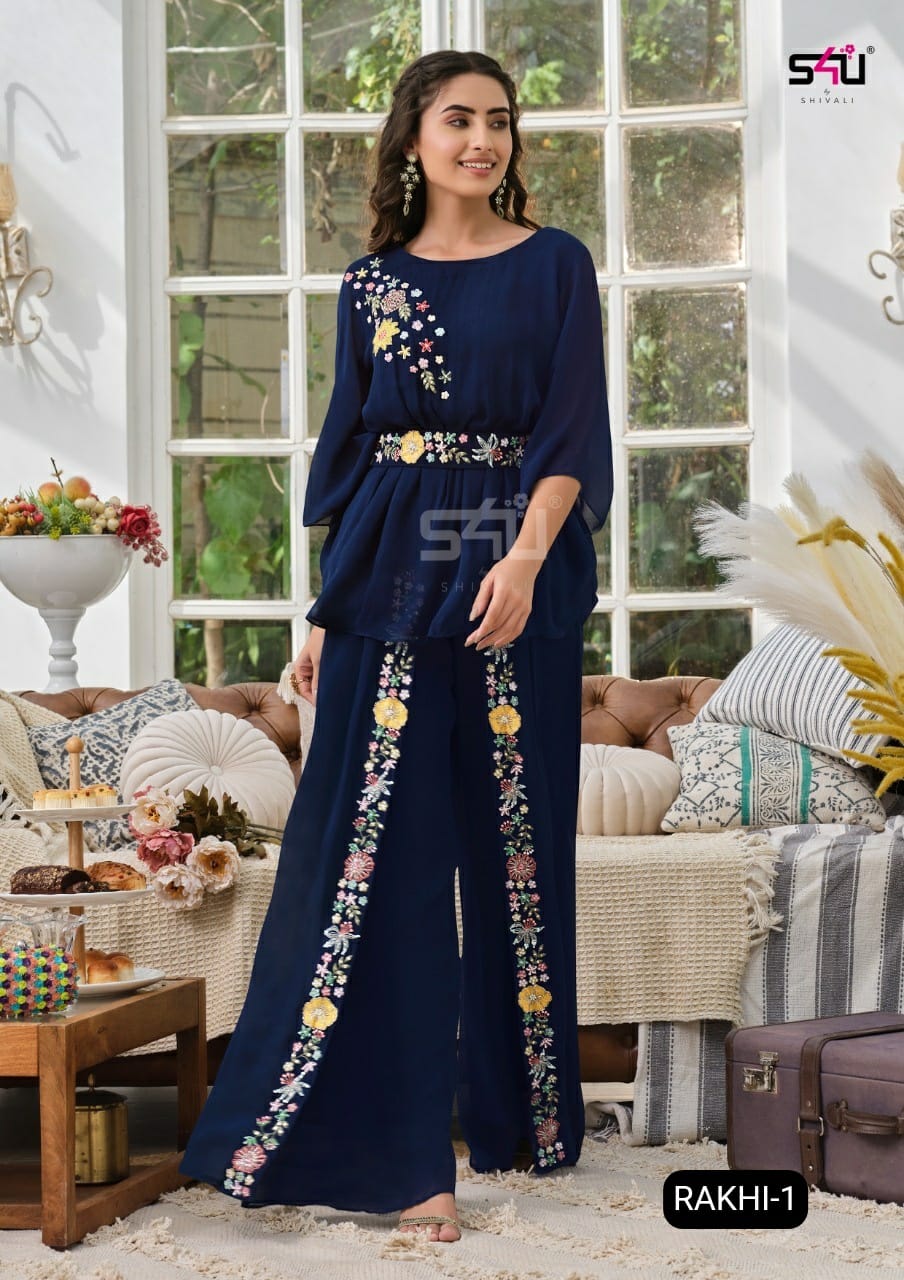 S4u Shivali Dno Rakhi 1 Georgette Wtih Heavy Embroidery HandWork Stylish Designer Party Wear Look Kurti