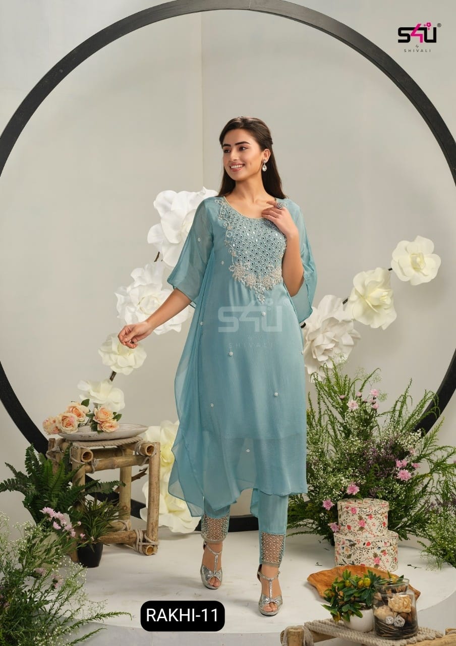 S4u Shivali Dno Rakhi 11 Georgette Wtih Heavy Embroidery HandWork Stylish Designer Party Wear Look Kurti