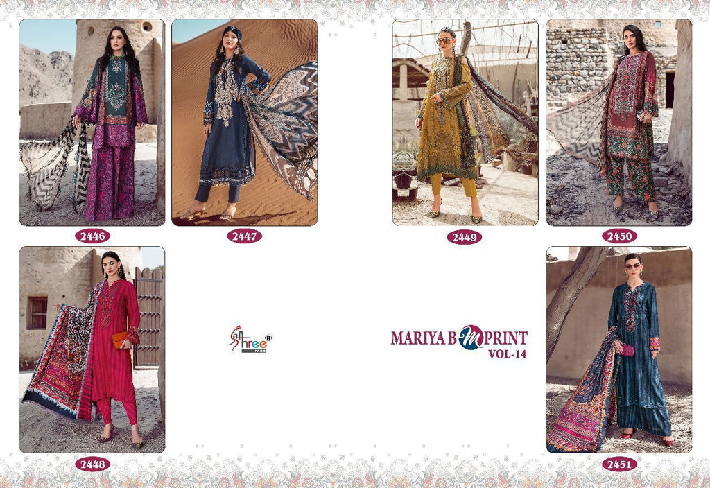 Shree Fabs Mariya B m Print Vol 14 Pure Cotton With Heavy Embroidery Work Stylish Designer Pakistani Casual Wear Salwar Kameez
