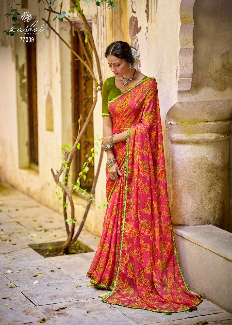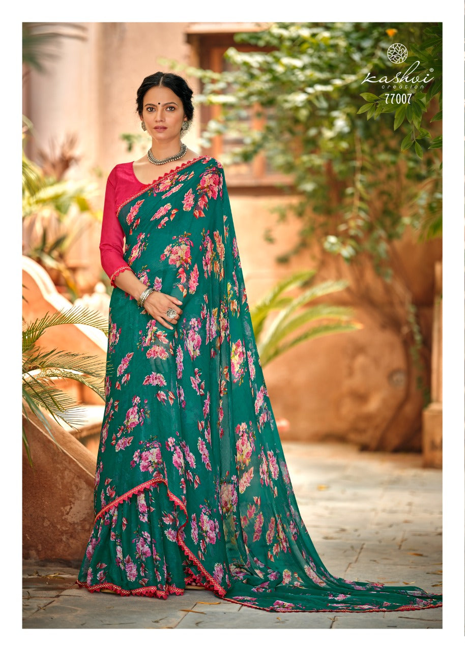 KASHVI CREATION RADHIKA RATE – 335/- FABRIC – Chiffon With Fancy Lace |