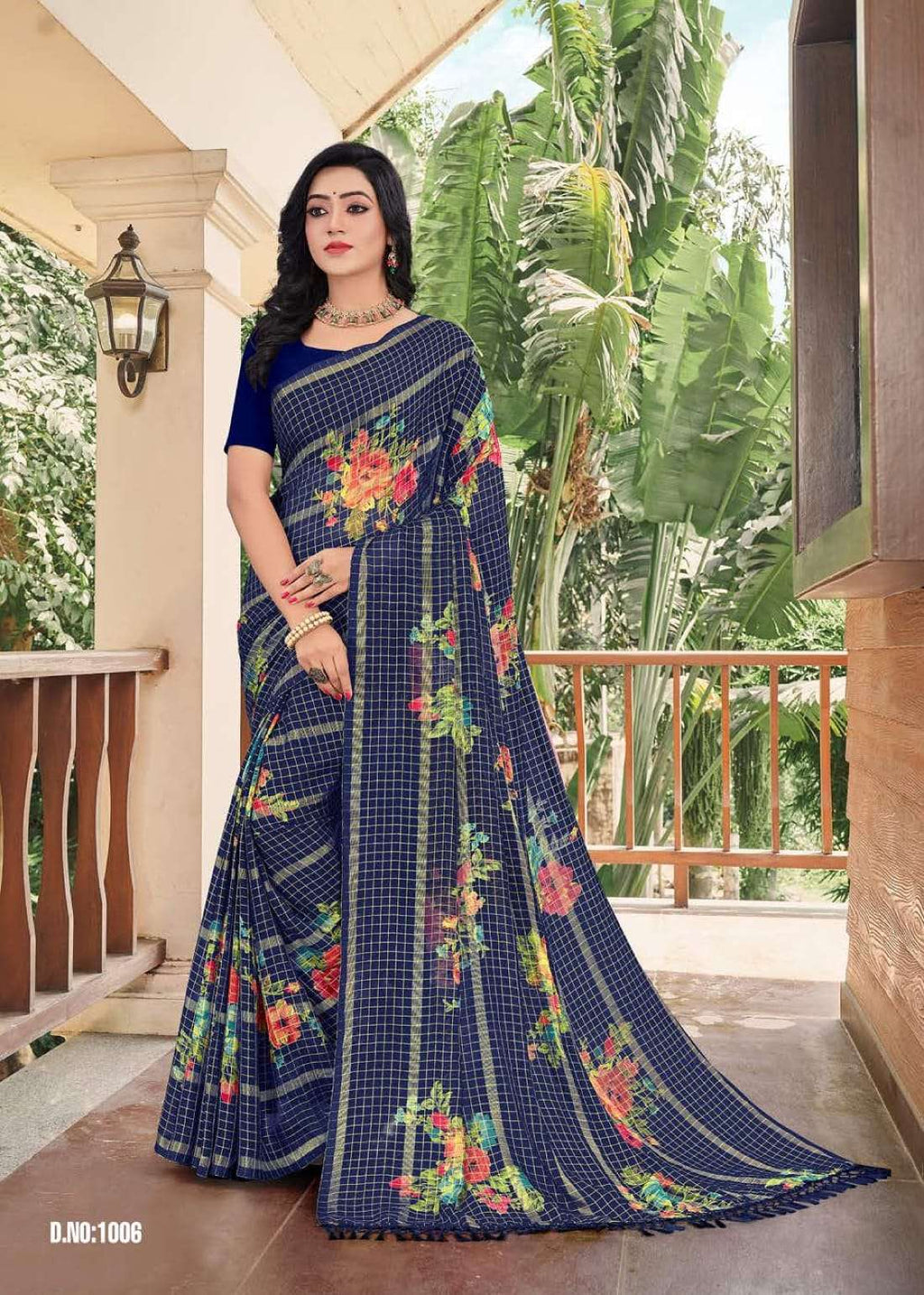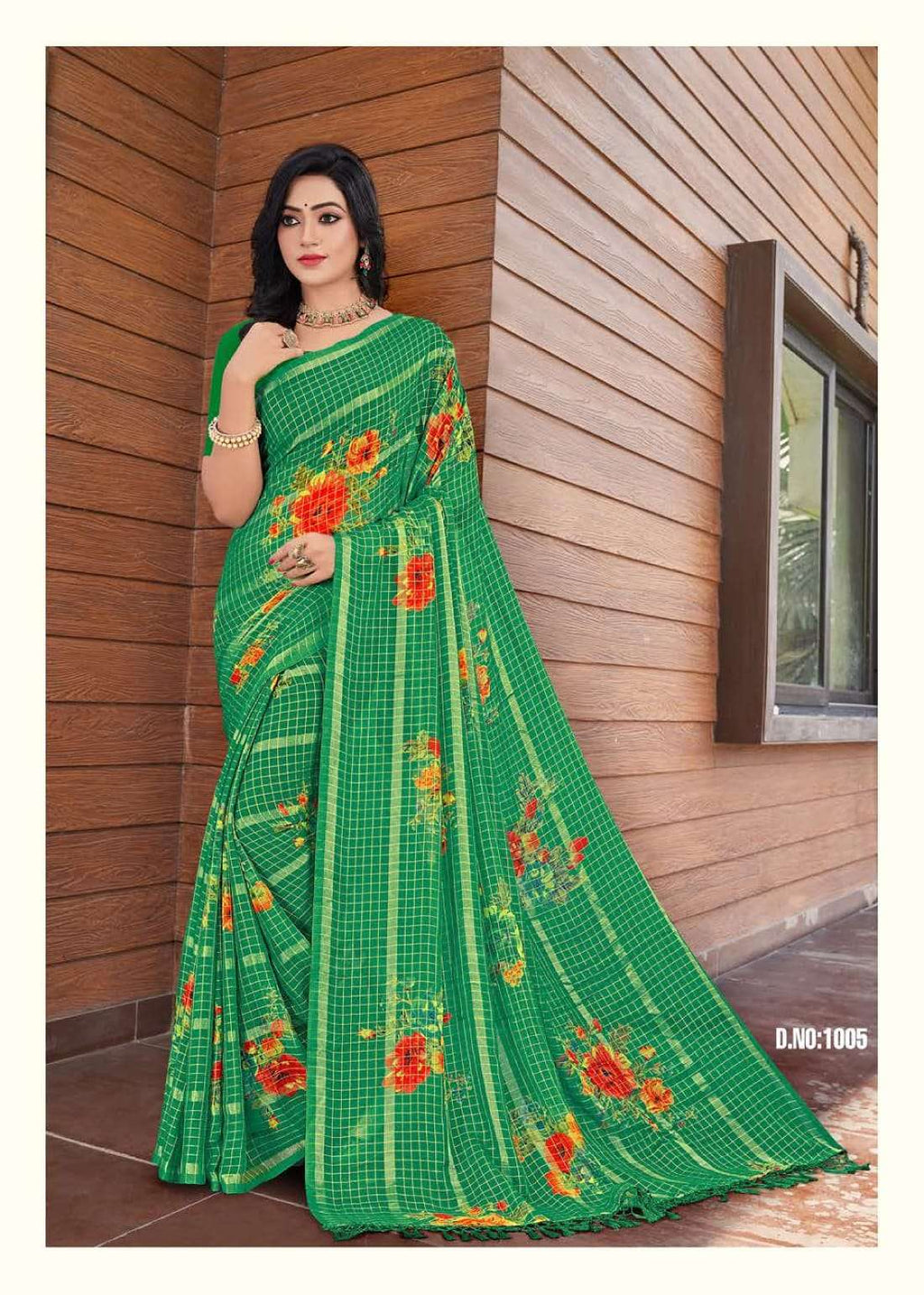 Fabric:- 40*40 CHIFFON CHEX PATTA WITH LATKAN PALLU |