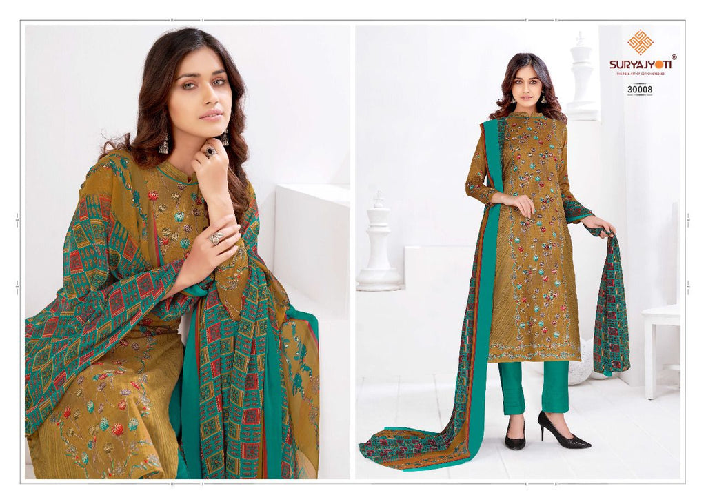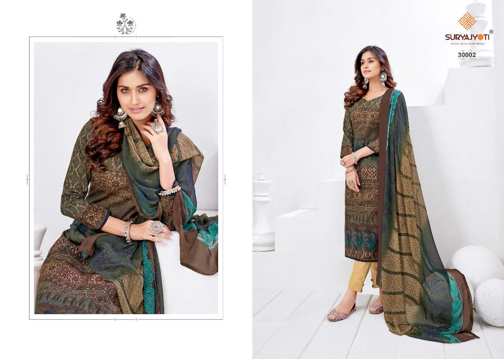 LAUNCHING OF SURYAJYOTI ‘S New CATALOG Catalogue:- NAISHAA VOL-30 Cloth:- SATIN COTTON Dupatta:- CHIFFON Cut:- 2.5-2.5-2.25 Rate:- 545/- ONLY |