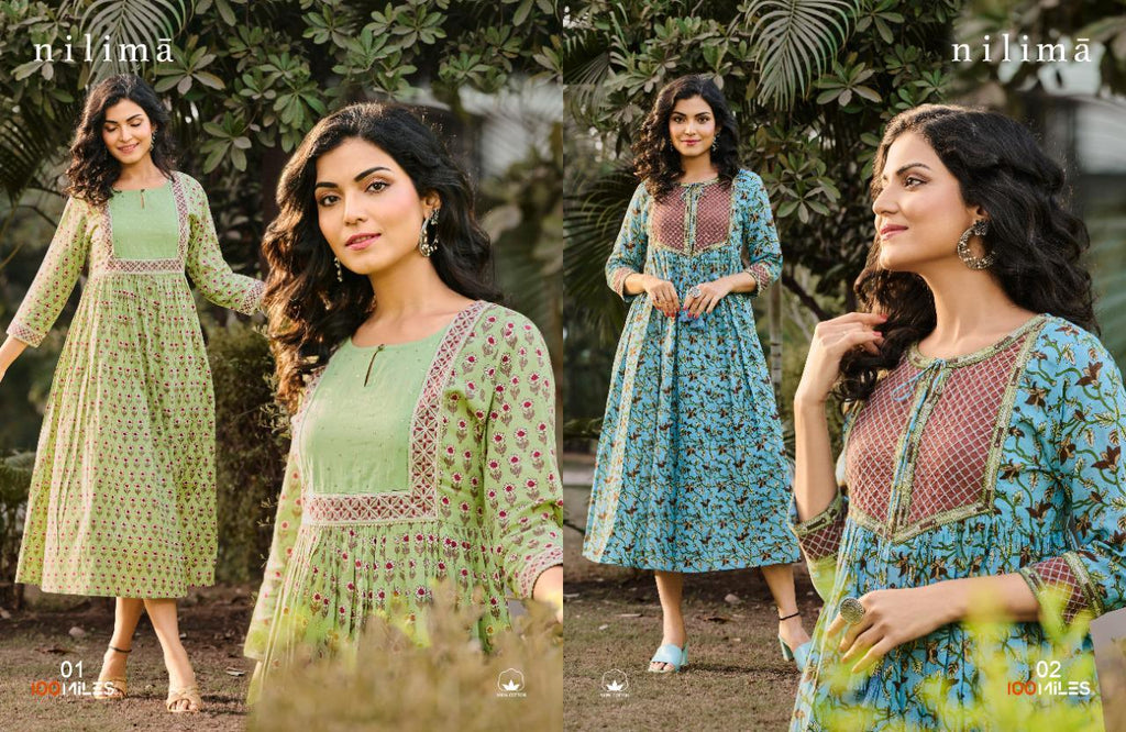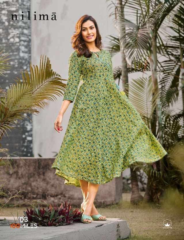 *Fabric * **Style : *Pure cotton* Printed Dress with *Embroidery And Hand Work* Detailing And With Flair Gathers. Size : S to 2XL |