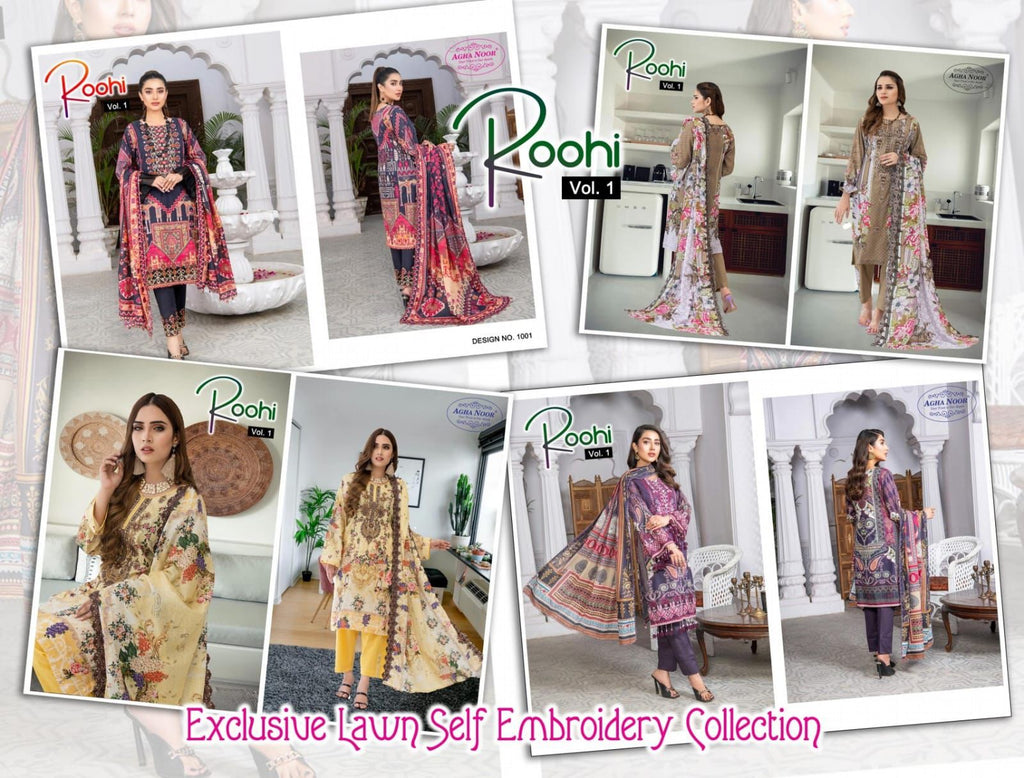 Agha Noor Roohi Vol 1 Pure Lawn Cotton Printed Partywear Salwar Kameez