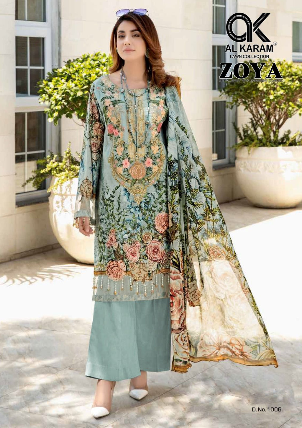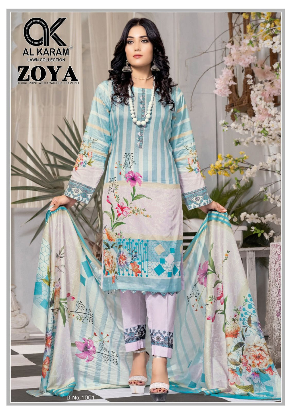 Al Karam Zoya Digital Print With Swarovski Diamond Jam Cotton Digital Printed Designer Salwar Suit