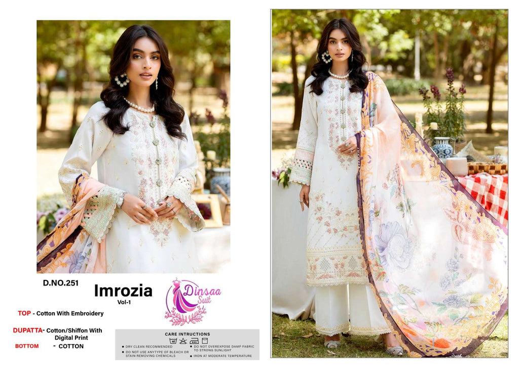Dinsaa Imrozia Vol 1 Cotton With Heavy Self Embroidery Designer Salwar Suit