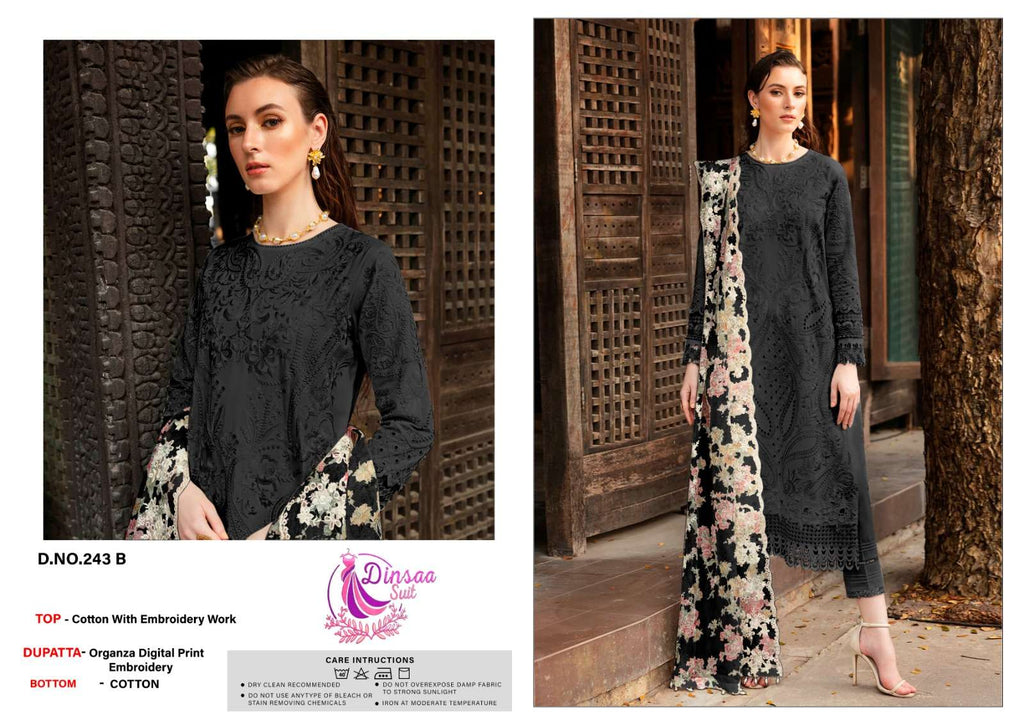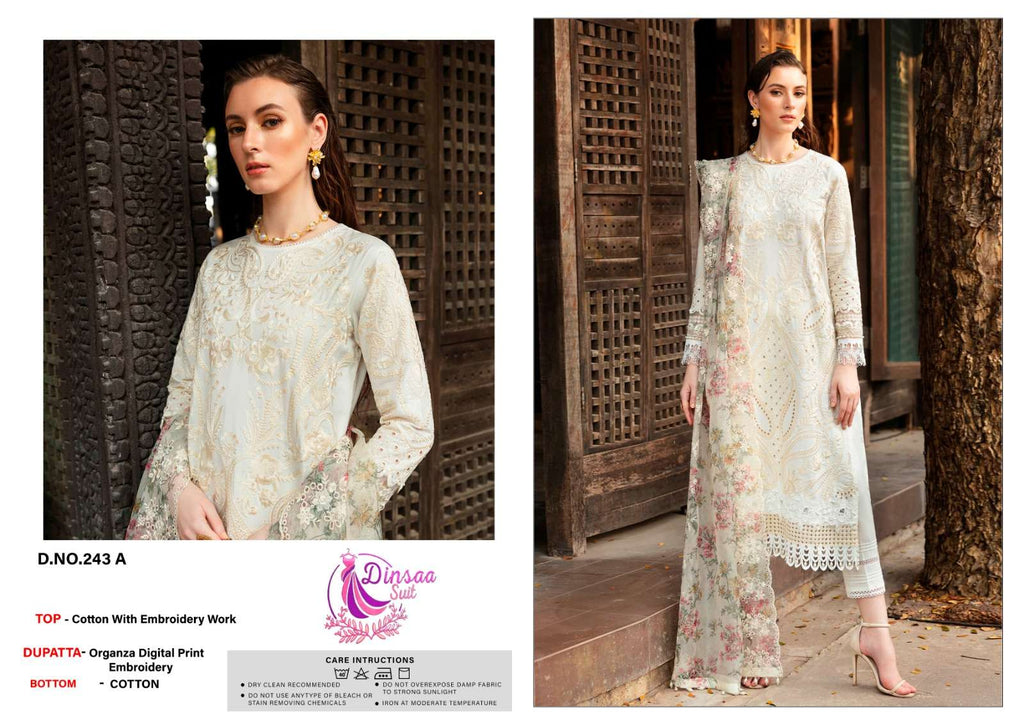 Top :-Heavy Cotton With Heavy Self Embroderey Bottom :- Cotton Dupata:- Organza Work With Digital Print |