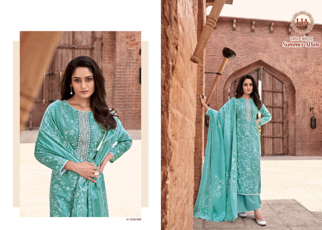 TOP: Pure Cambric Designer Print with Fancy Neck Embroidery BOTTOM: Pure Cotton Solid DUPPATTA: Pure Cotton Mal Mal Designer Print with Lace |