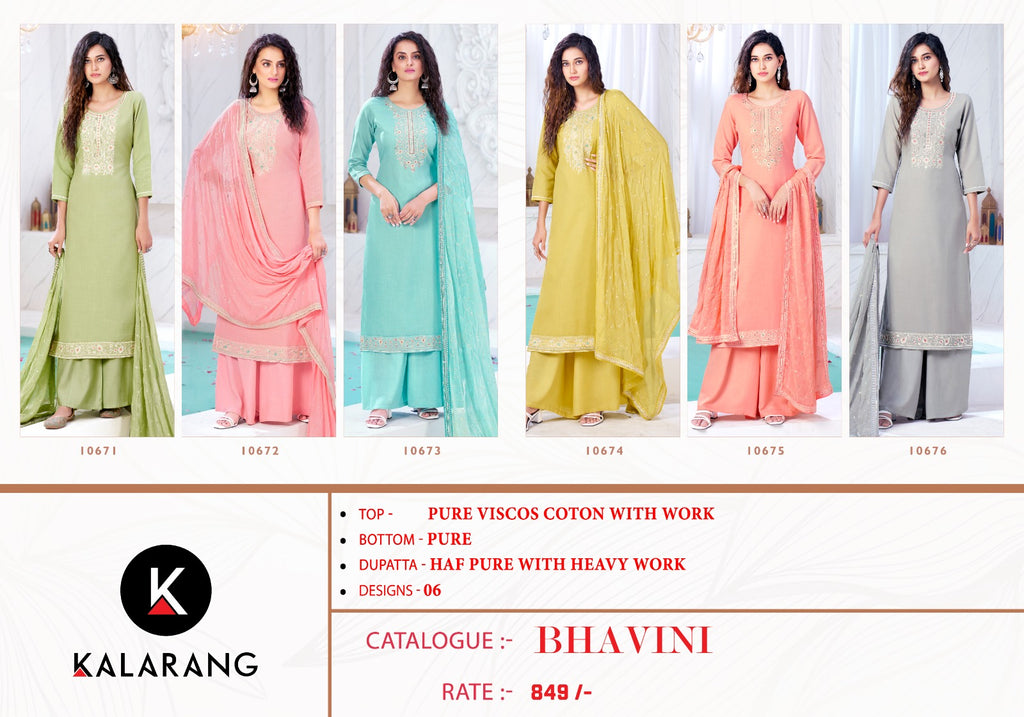 Kalarang Fashion Bhavini Viscose Cotton Heavy Work Fancy Designer Salwar Kameez