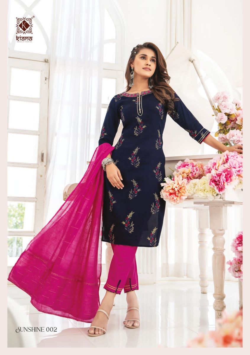 Kiana House Of Fashion Sunshine Cotton Designer Fancy Embroidered Kurtis With Bottom & Dupatta
