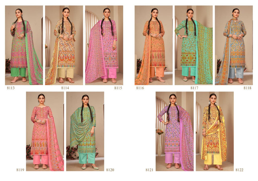 TOP- SOFT COTTON JEQARD STYLE PRINT (2.50 mtrs) Bottom:- SOLID COTTON Dyed(2.40 MTR) * Dupatta :- Pure Designer jequard style kani print Dupatta ..*2.15MTR |