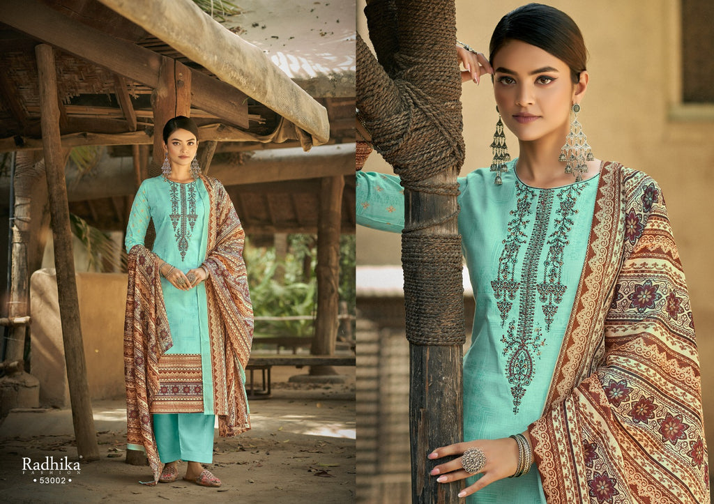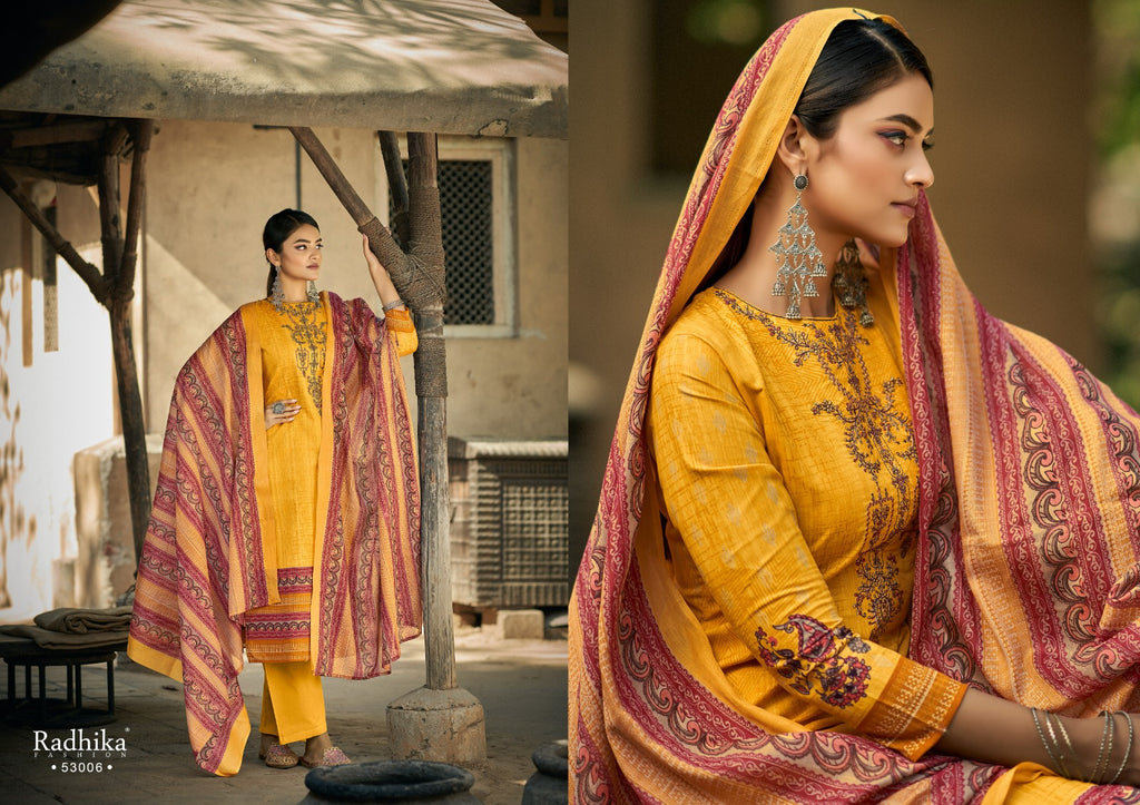 Radhika Fashion Azara Mussaret Vol 21 Pure Cambric Cotton Designer Prints Neck Embroidery Work Stylish Designer Partywear Salwar Suit
