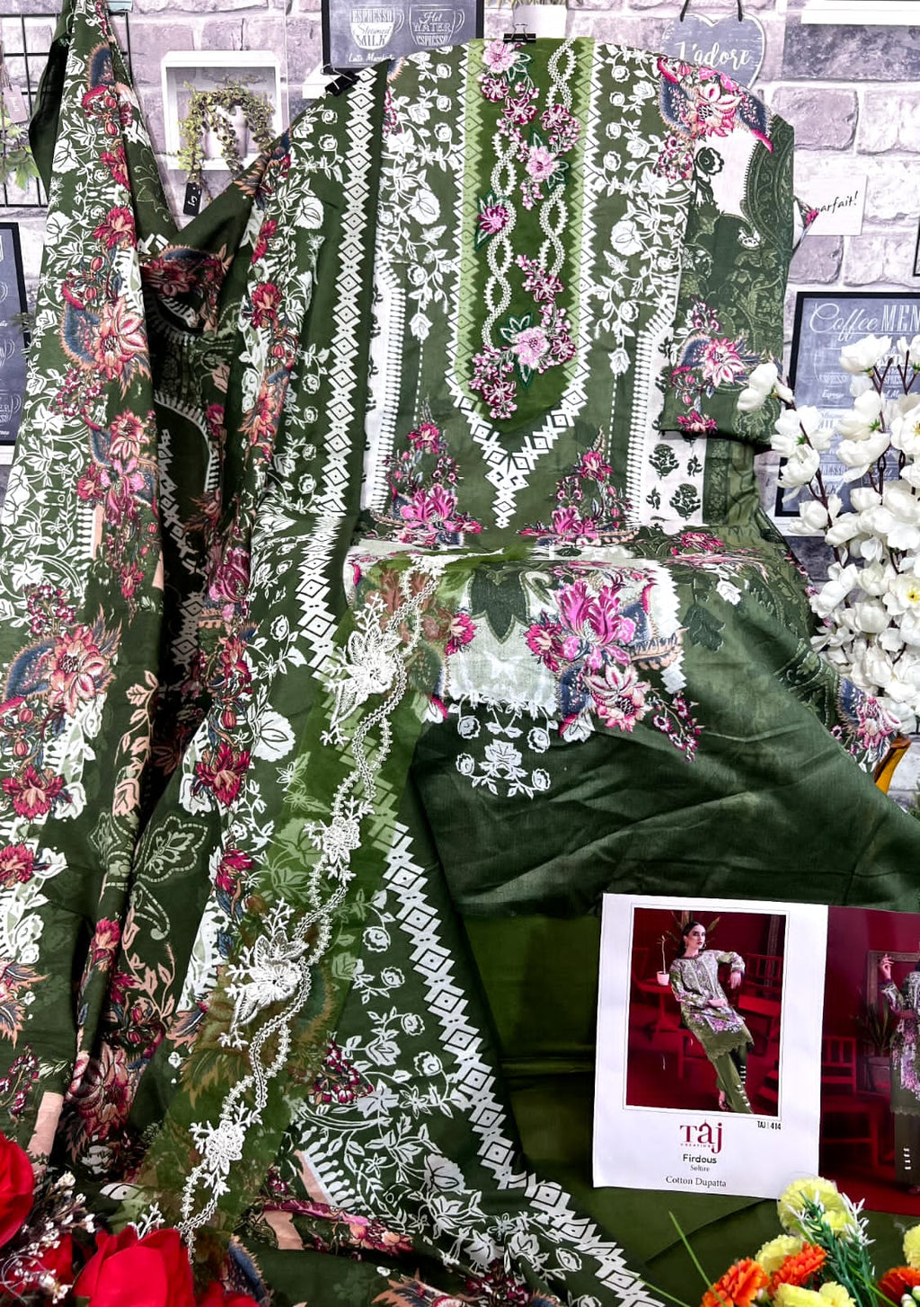 Taj Creation Firdous Solitaire D No 412 & 414 Cotton Embroidery Salwar Kameez