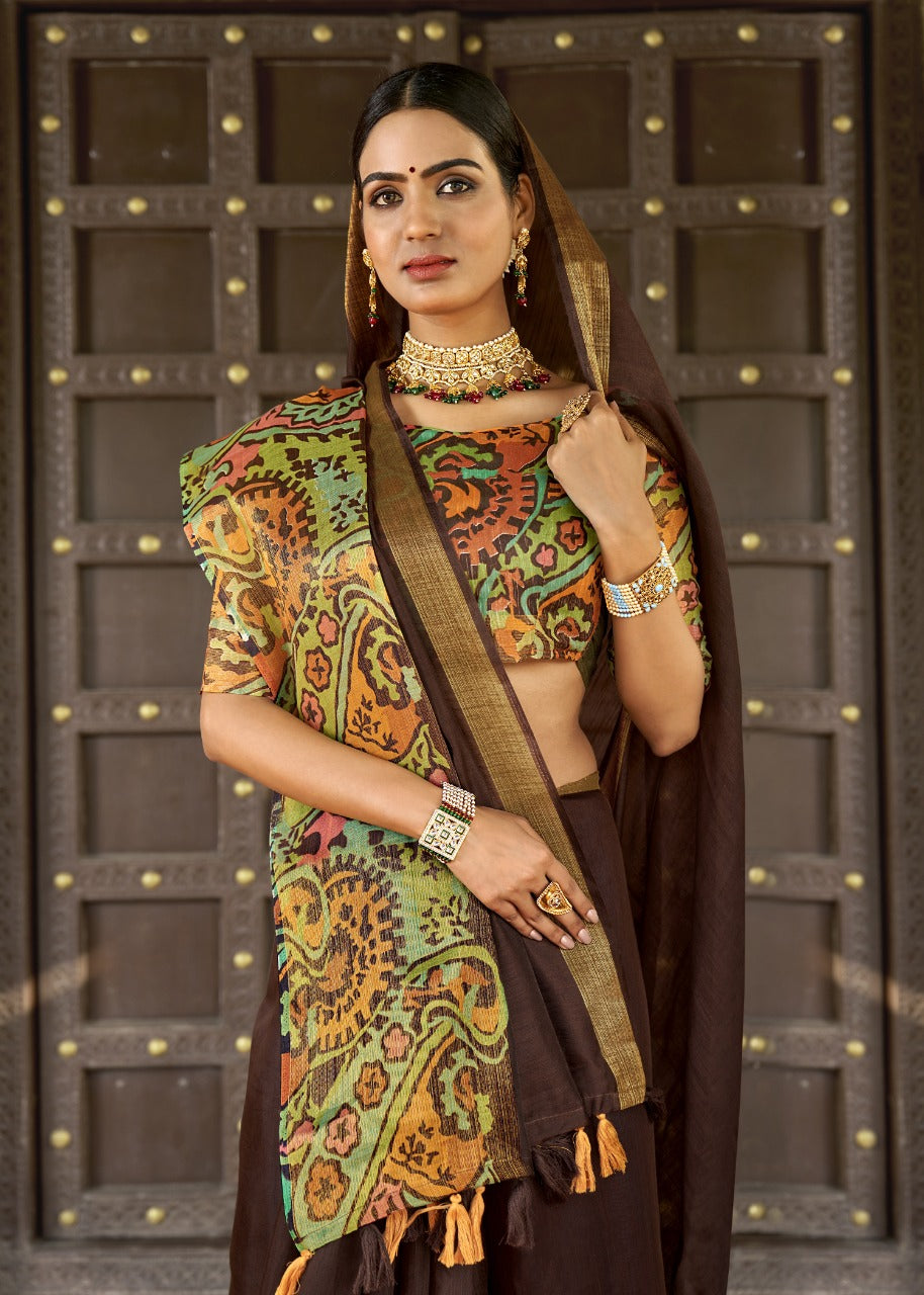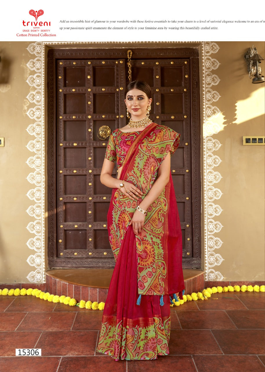 Trivani Saree Sannidhi Cotton Stylish Designer Festival Wear Printed Saree