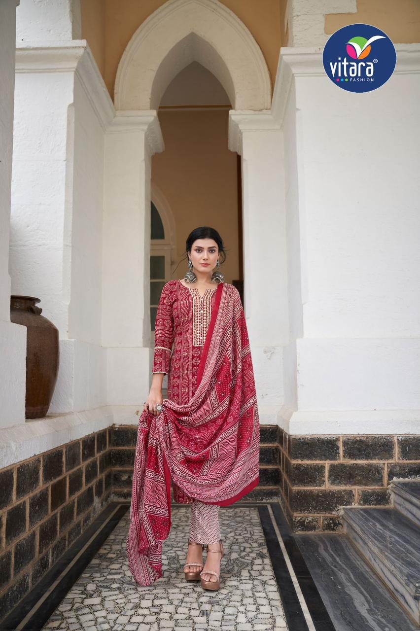 Vitara Fashion Violet Printed Cambric Cotton With Fancy Designer Ready Made Suits