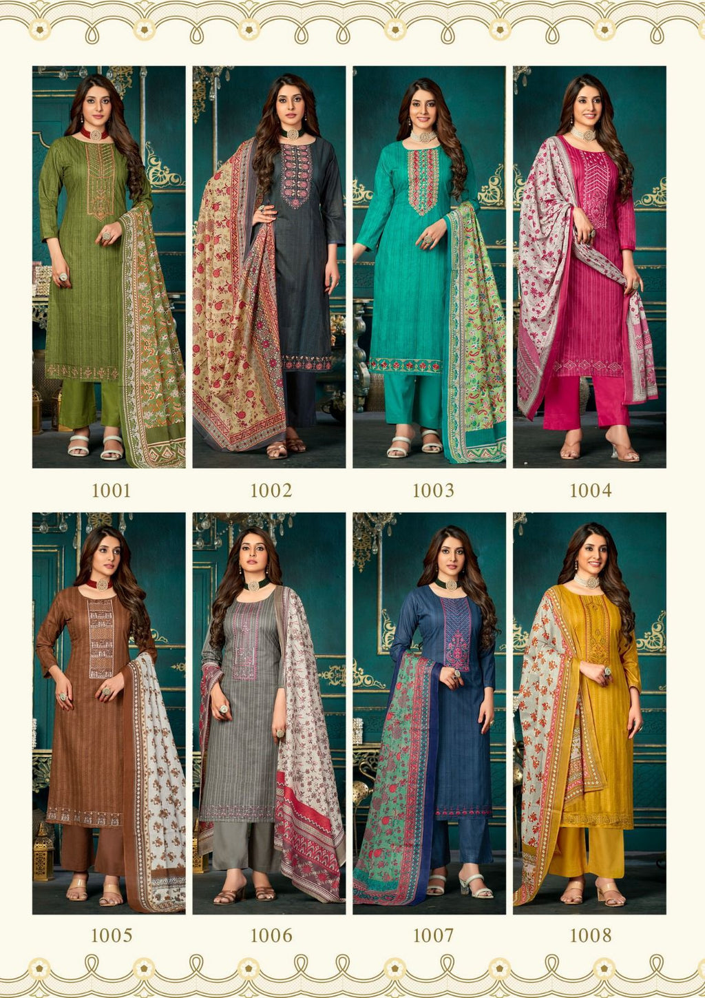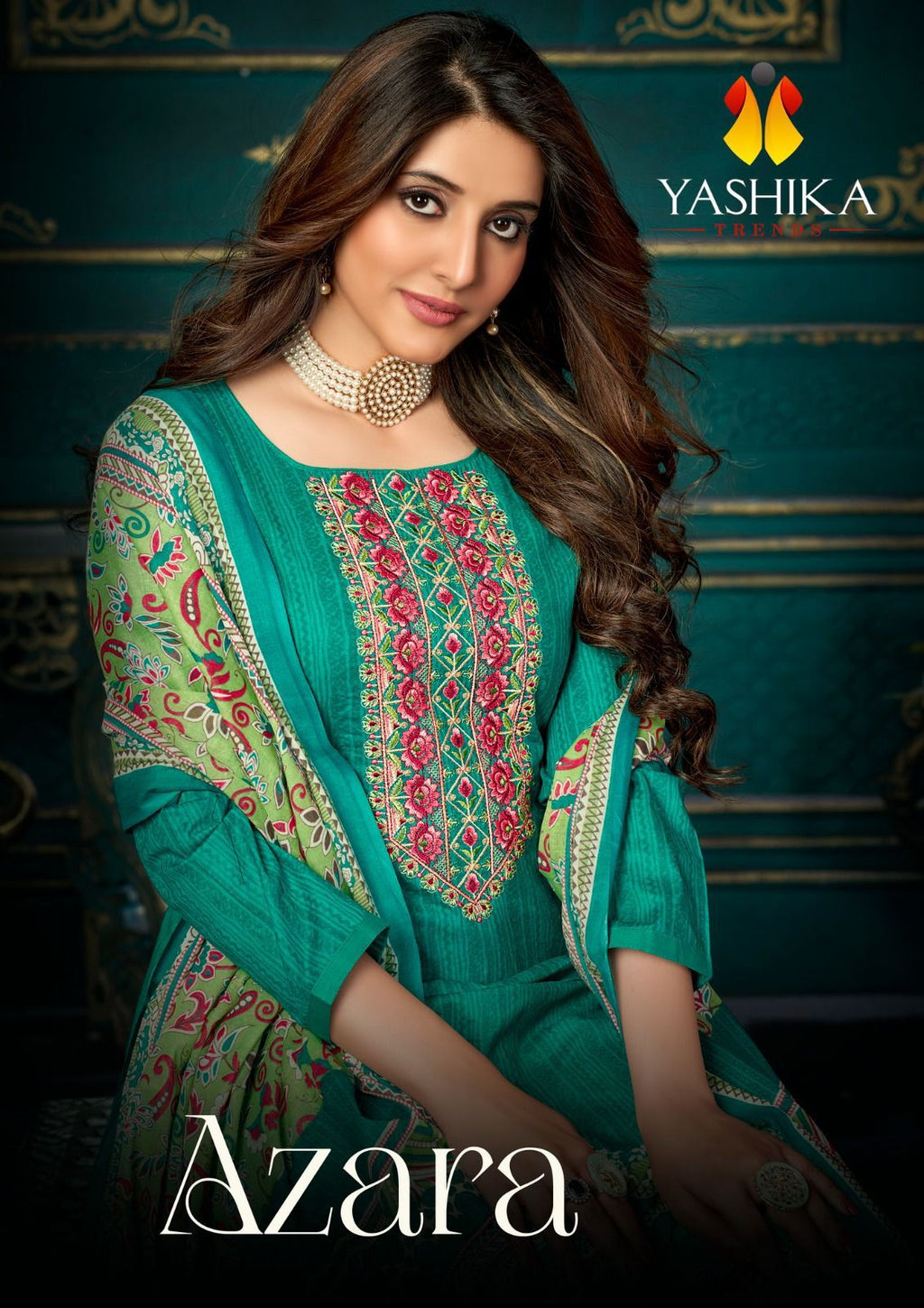 Yashika Trends Azara Cotton Fancy Printed Exclusive Neck Diamond Embroidery Work Designer Salwar Suit