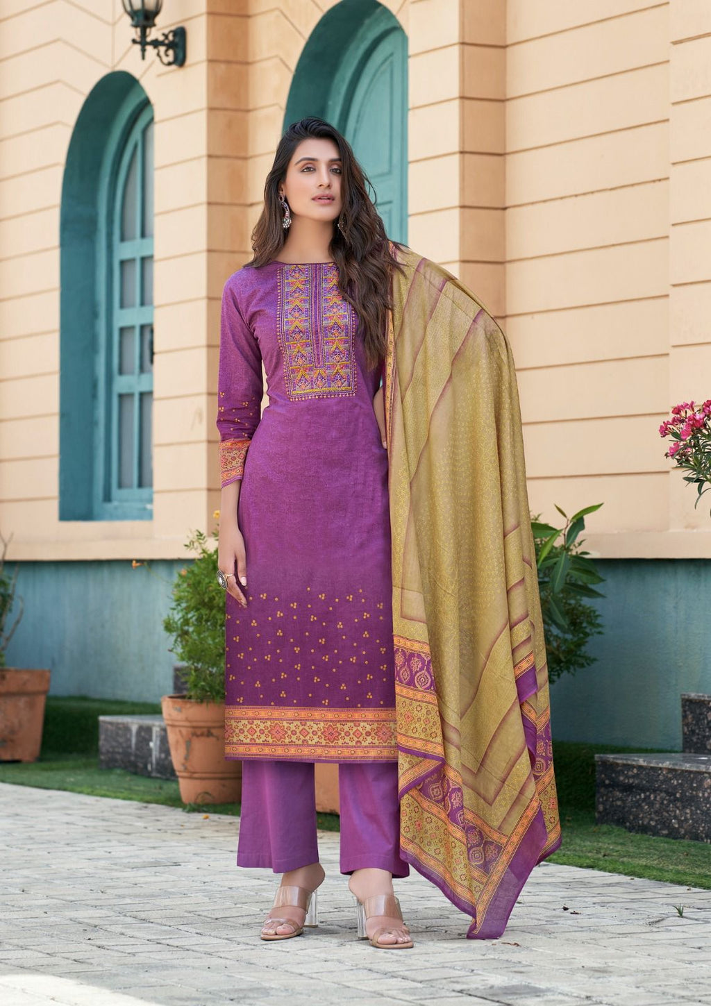TOP :- **HEAVY COTTON WITH EXCLUSIVE NECK EMBROIDERY :- HEAVY COTTON 2.5 MTR :- 2:25( HEAVY COTTON DUPATTA WITH BOX PALLU FANCY DISINE) |