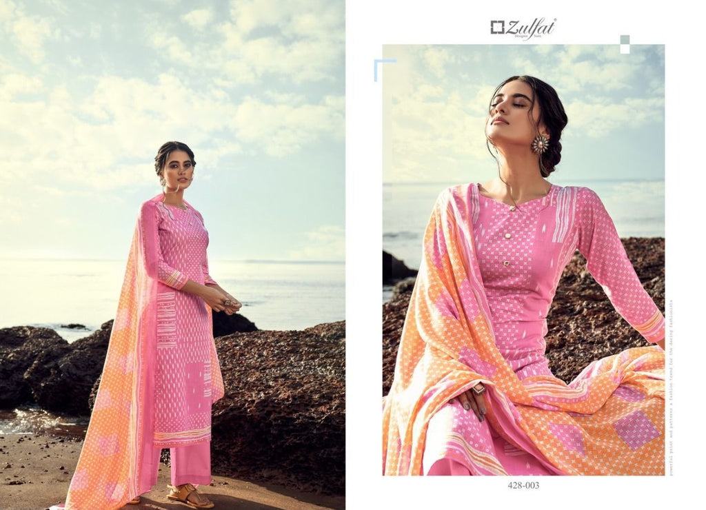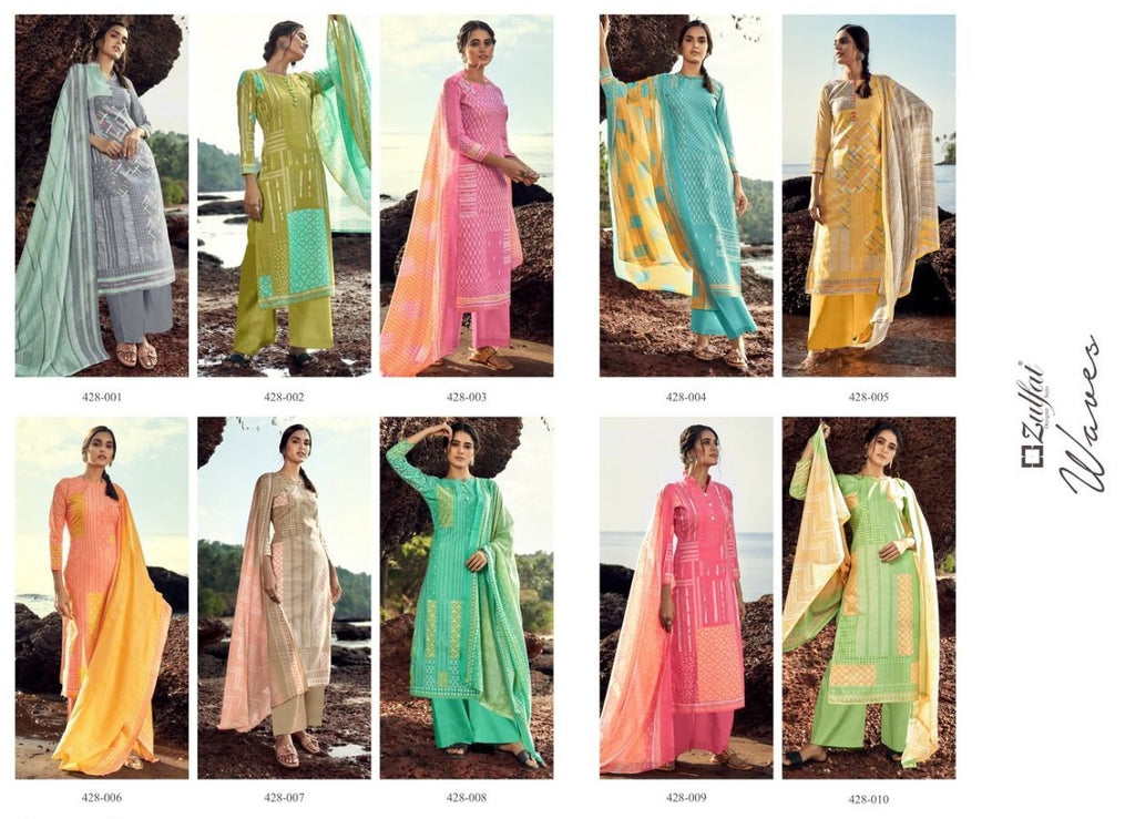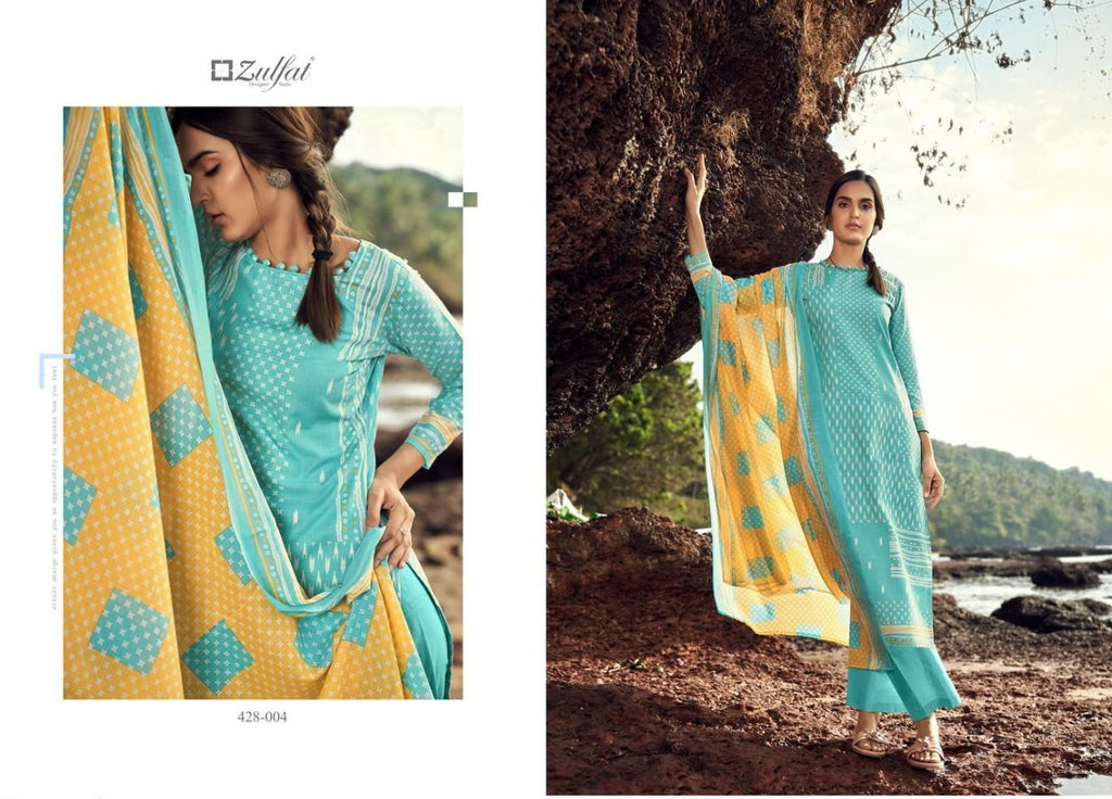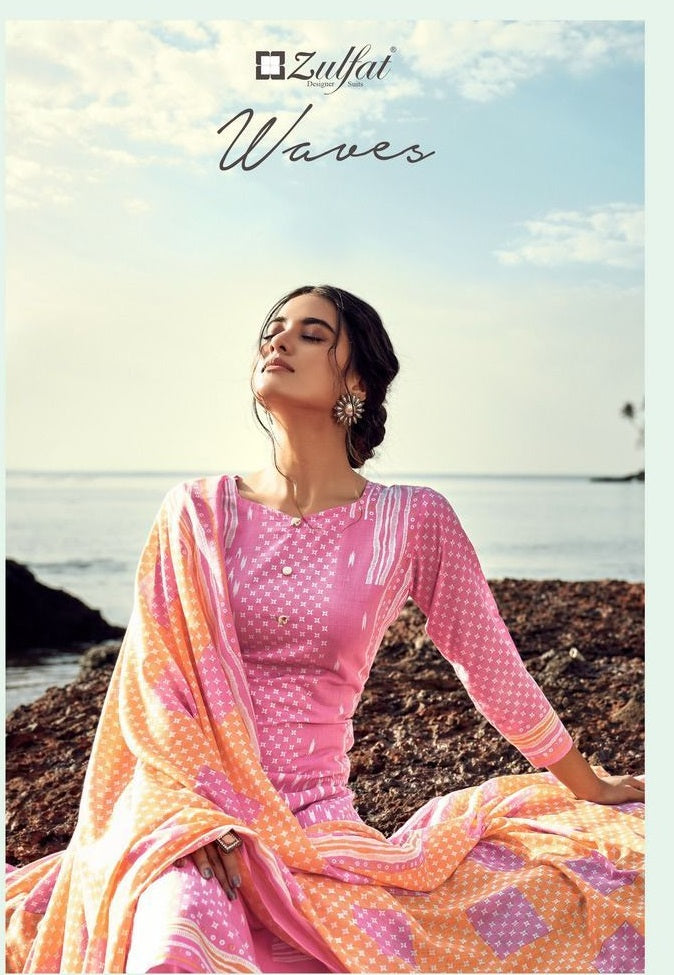 Zulfat Designer Suits Waves Cotton Fancy Printed Festive Wear Salwar Kameez
