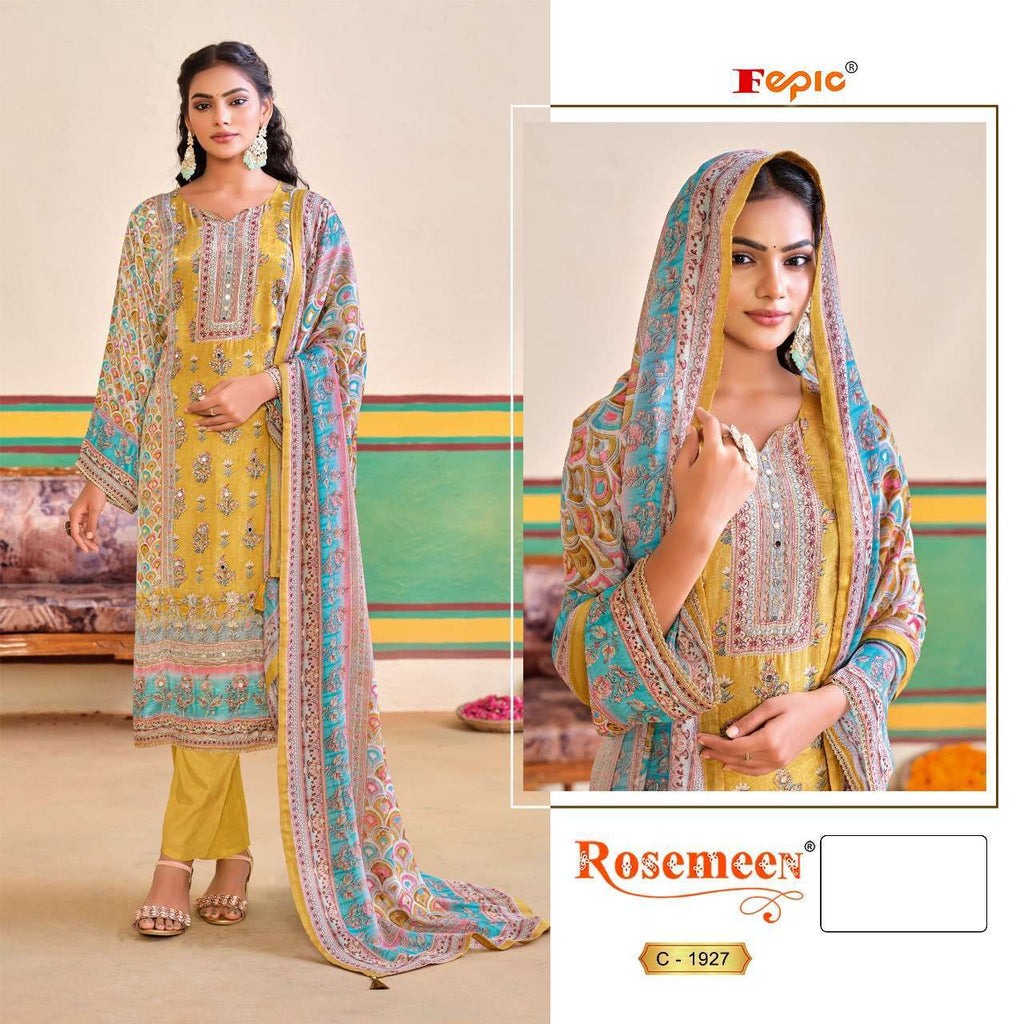 Fepic Suit C 1927 Pure Natural Crepe Printed Embroidery Work Pakistani Suit