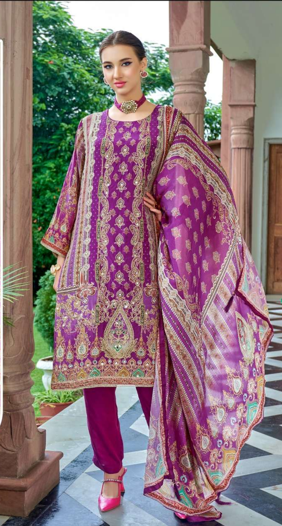 top:- pure natural crape printed embroidered |