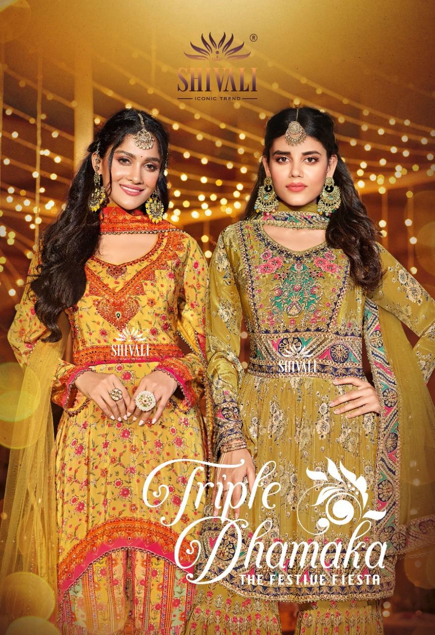 Shivali Triple Dhamaka Crepe With Beautiful Heavy Embroidery Work Stylish Designer Festive Wear Kurti