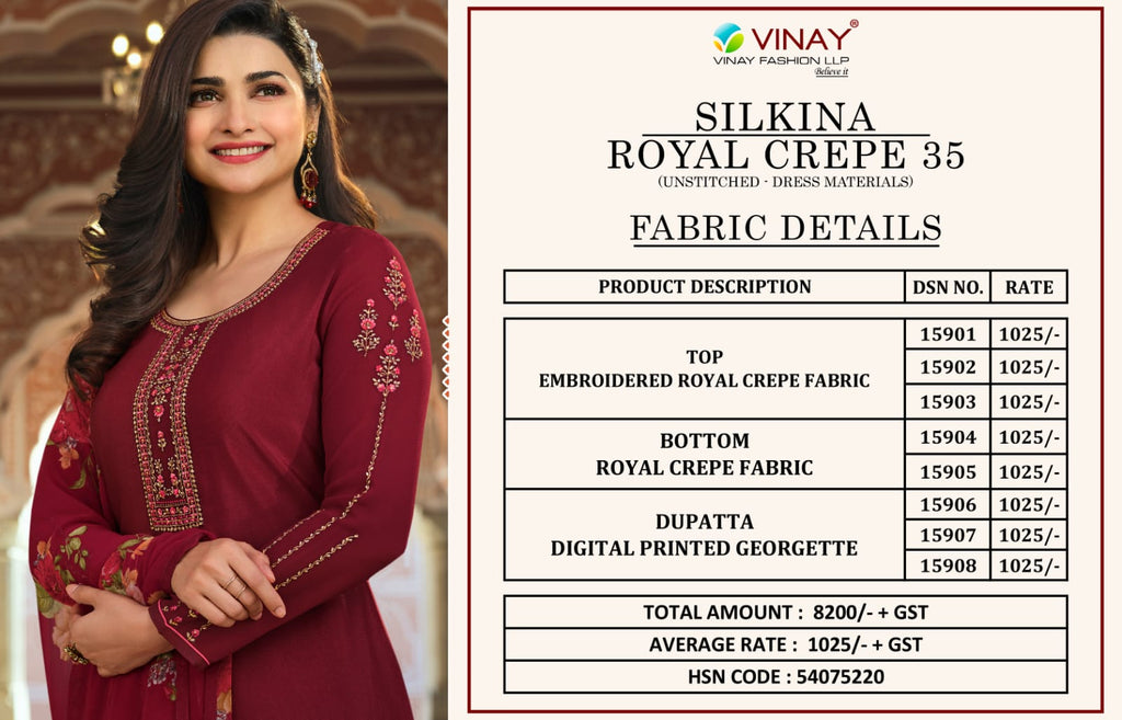 Vinay Fashion Royal Crepe 35 With Heavy Embroidery Work Stylish Designer Festive Wear Party Wear Salwar Kameez