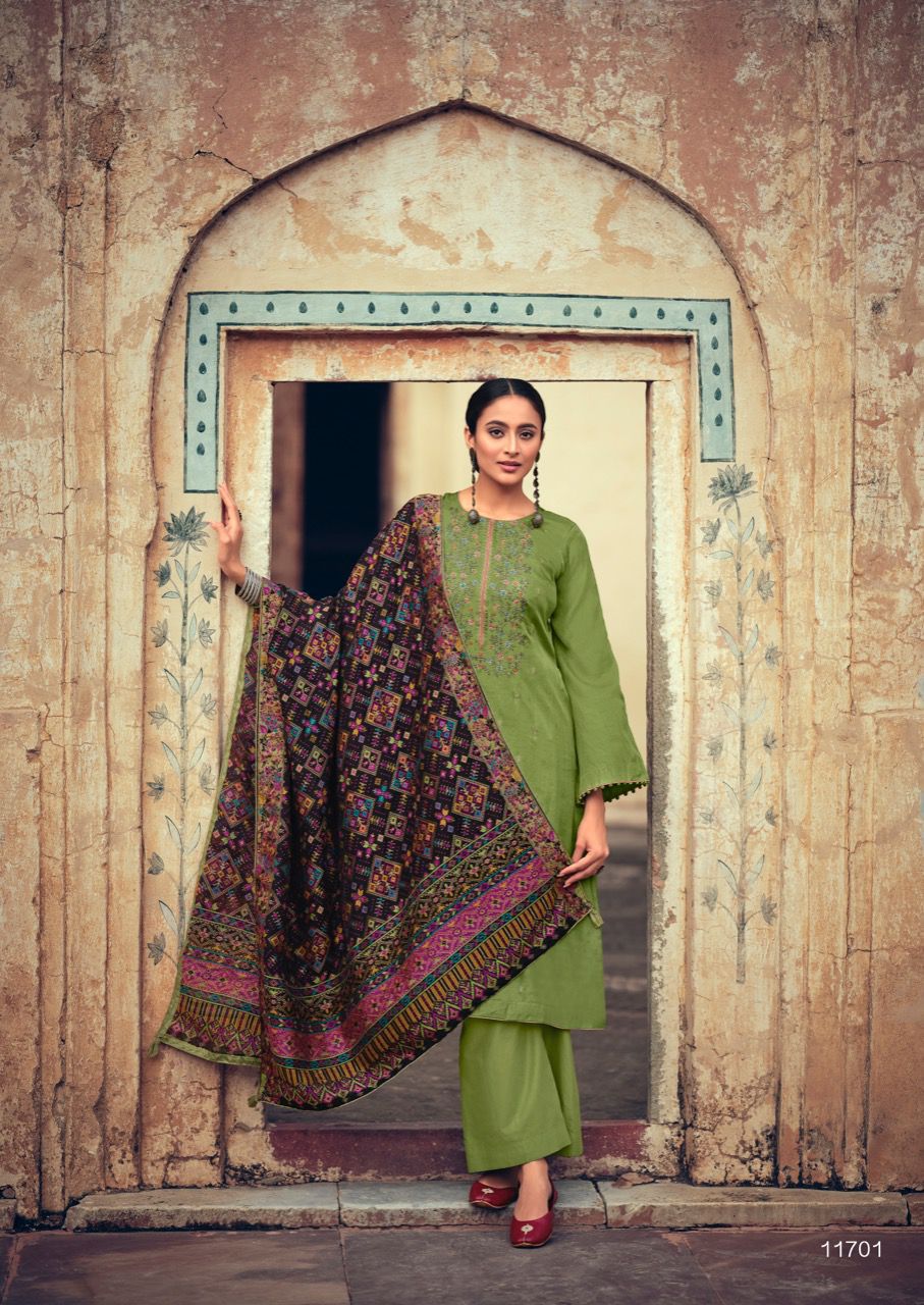 Top – Tussar silk with embroidery Bottom – Dull santoon Dupatta – Pure viscose meena weave Jacquard DESIGNS:- 6 Rate – 1499/- + GST Special pouch packing |