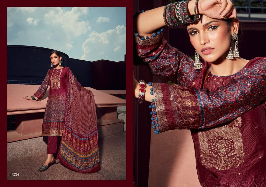 Top : Pure Dola Jacquard With Digital Print & Hand Embroidery                                                                                  Bottom : Dull Santoon                                                                  Dupatta : Pure Chinon With Digital Print