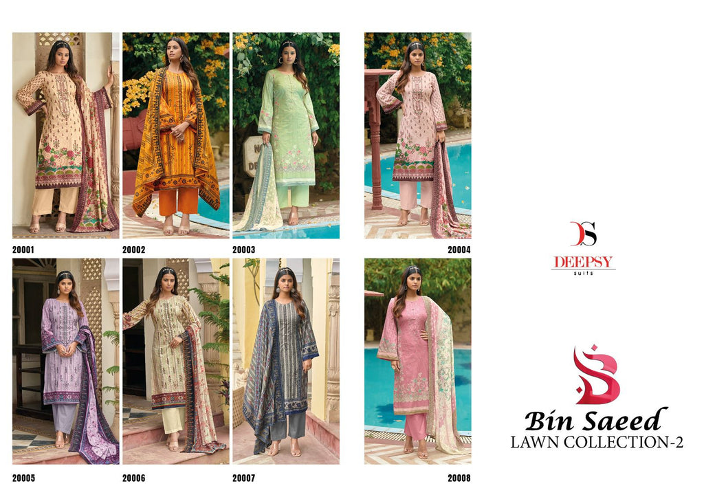 Deepsy Suits Bin Saeed Lawn Collection Vol 2 Pure Cotton Self Embroidery Work Pakistani Designer Salwar Suit